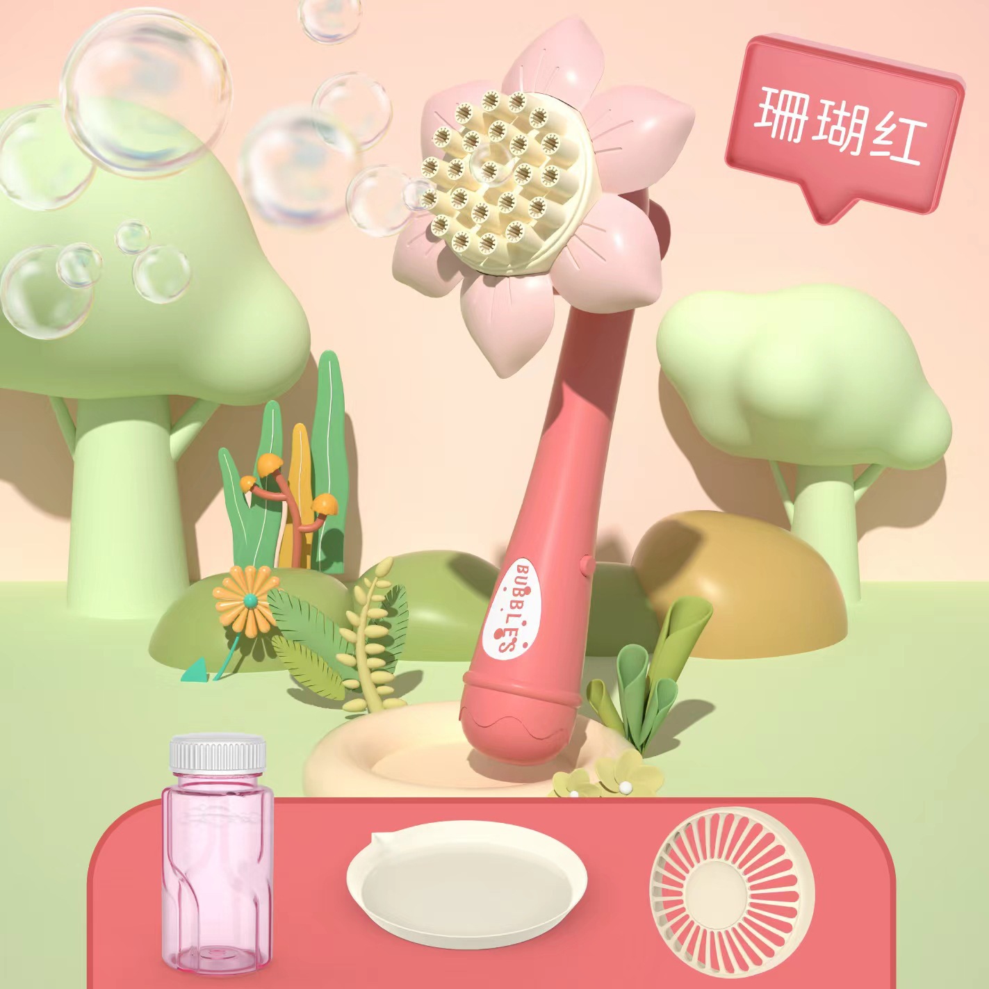 • [핑크] 2-in-1 팬 버블 해바라기 버블 완드 [배터리 제외] 가방