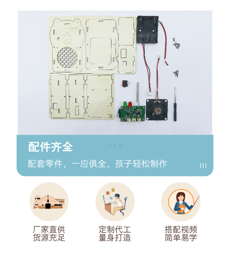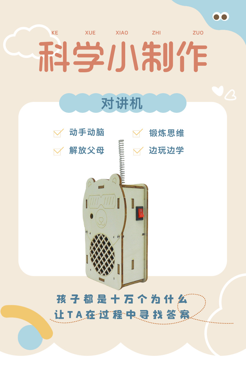 어린이 워키 토키 과학 실험 과학 및 교육 최첨단 DIY 목재 기술 소규모 생산 300m 무선 호출기스토어 가기