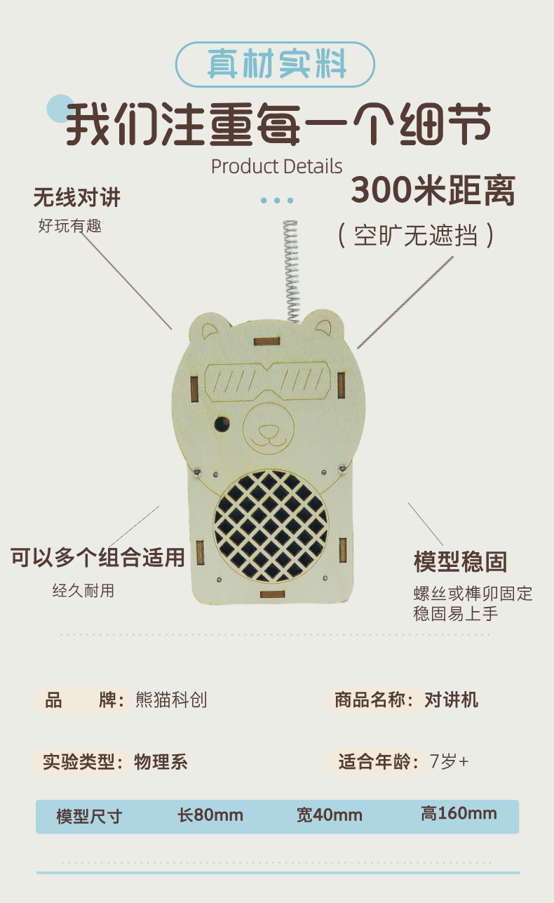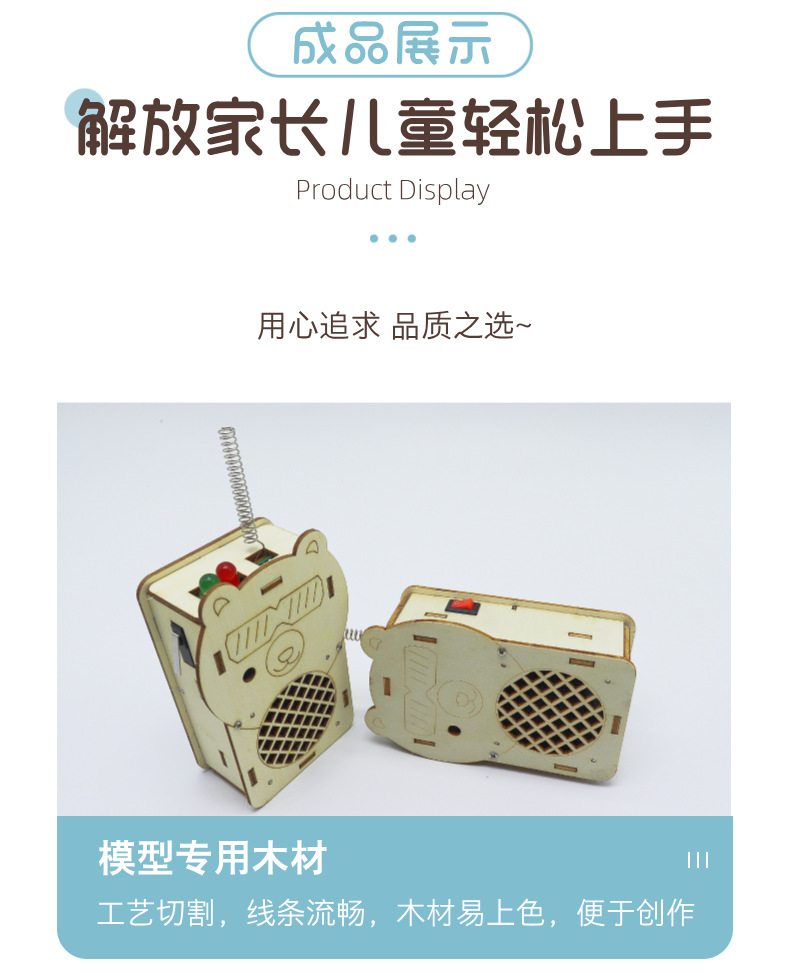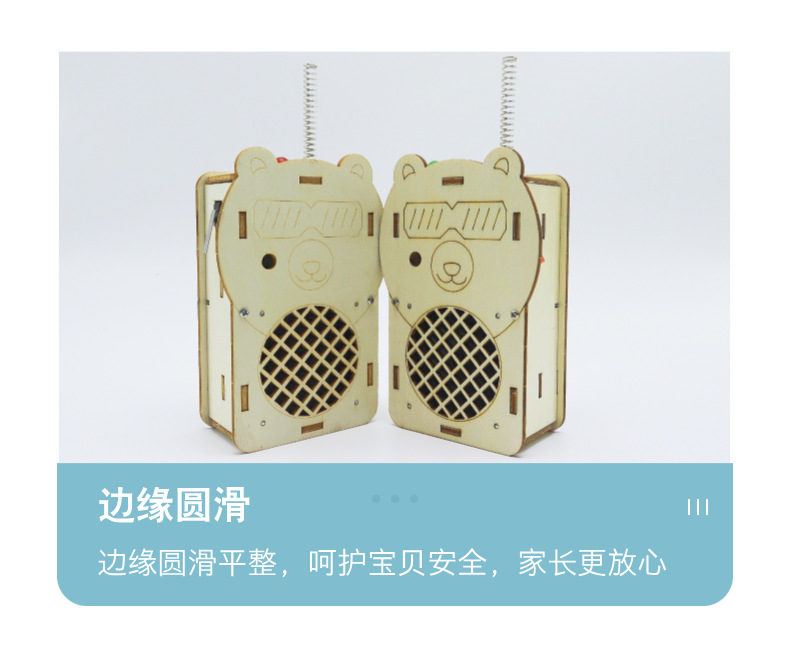 어린이 워키 토키 과학 실험 과학 및 교육 최첨단 DIY 목재 기술 소규모 생산 300m 무선 호출기