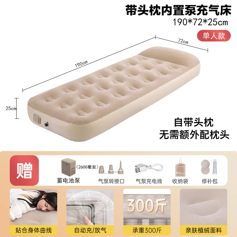 야외용 휴대용 캠핑용 풍선 매트리스 점심시간 접이식 에어 매트리스 자체 충전식 두꺼운 에어 침대
