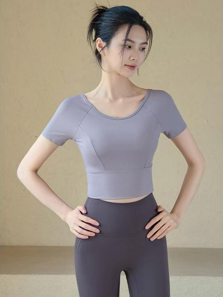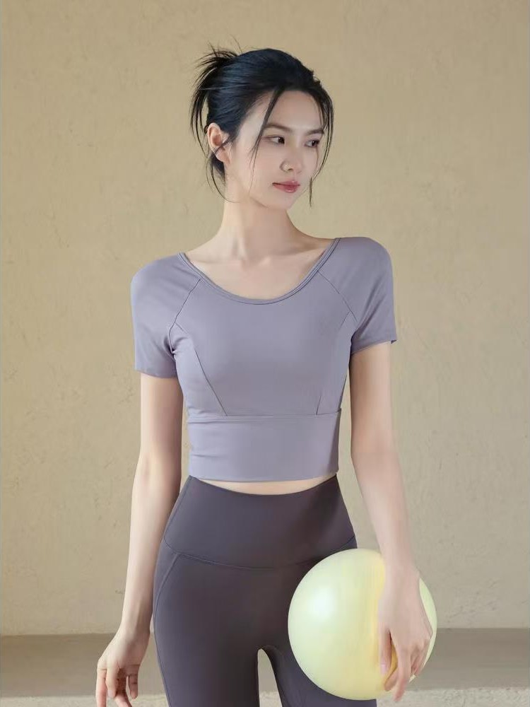 요가 아름다운 뒤 탑 필라테스 여성 2025 여름 새로운 러닝 스포츠 반팔 티셔츠 트레이닝 피트니스 슈트스토어 가기
