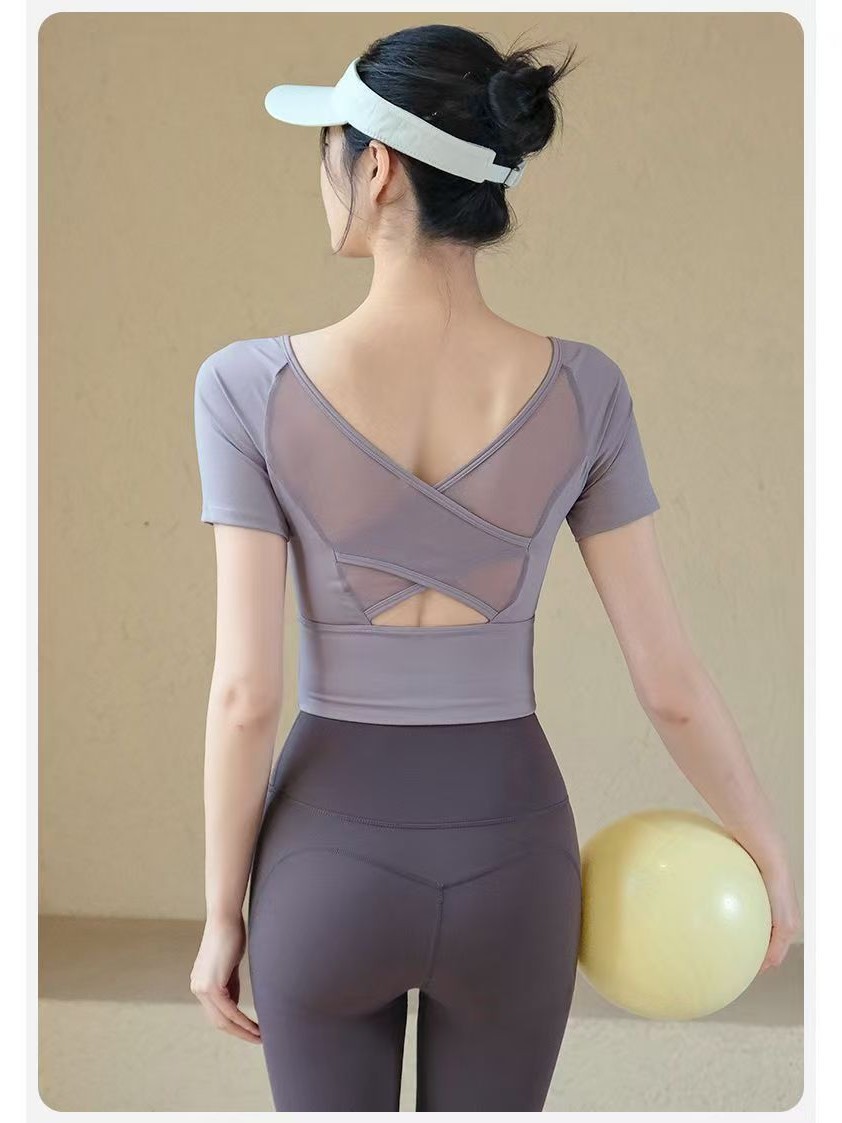 요가 아름다운 뒤 탑 필라테스 여성 2025 여름 새로운 러닝 스포츠 반팔 티셔츠 트레이닝 피트니스 슈트