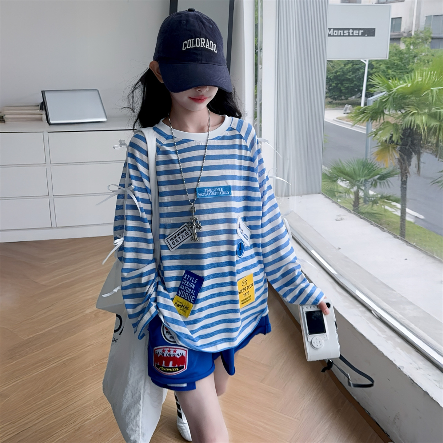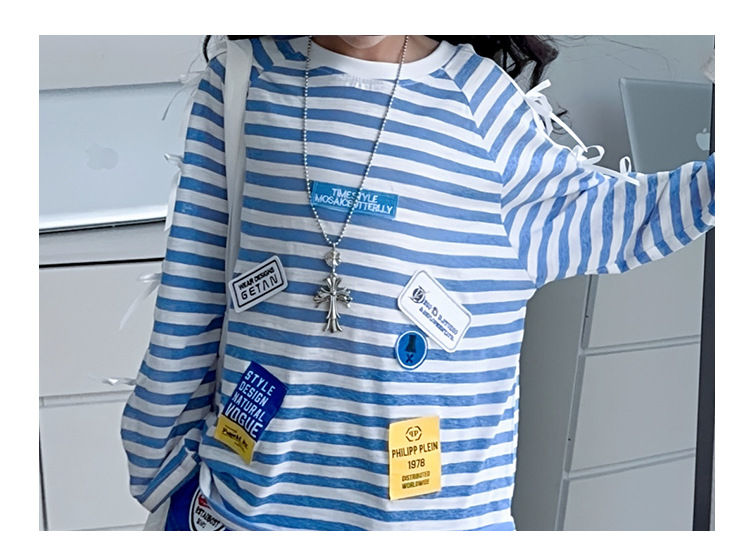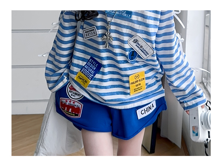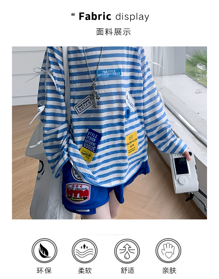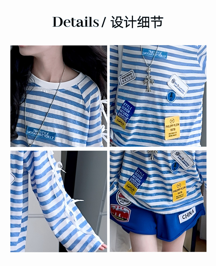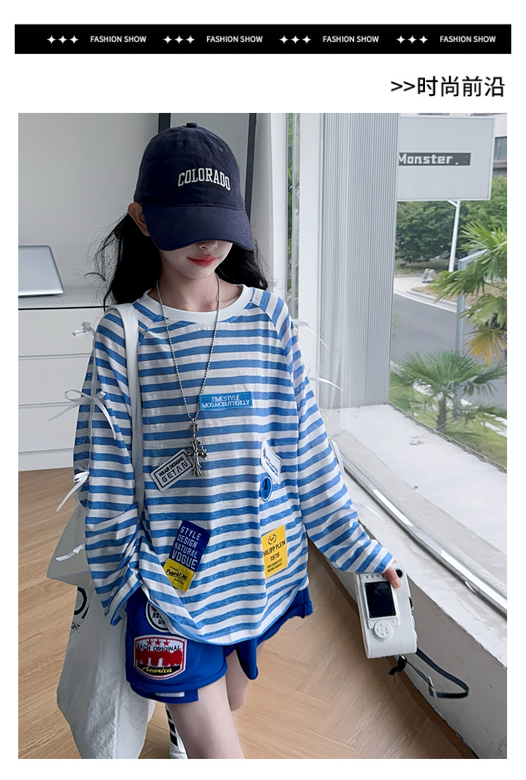 아동복 여아 정장 여름 얇은 2025 새로운 중대형 아동 줄무늬 긴팔 자외선 차단 의류 반바지 투피스 세트스토어 가기