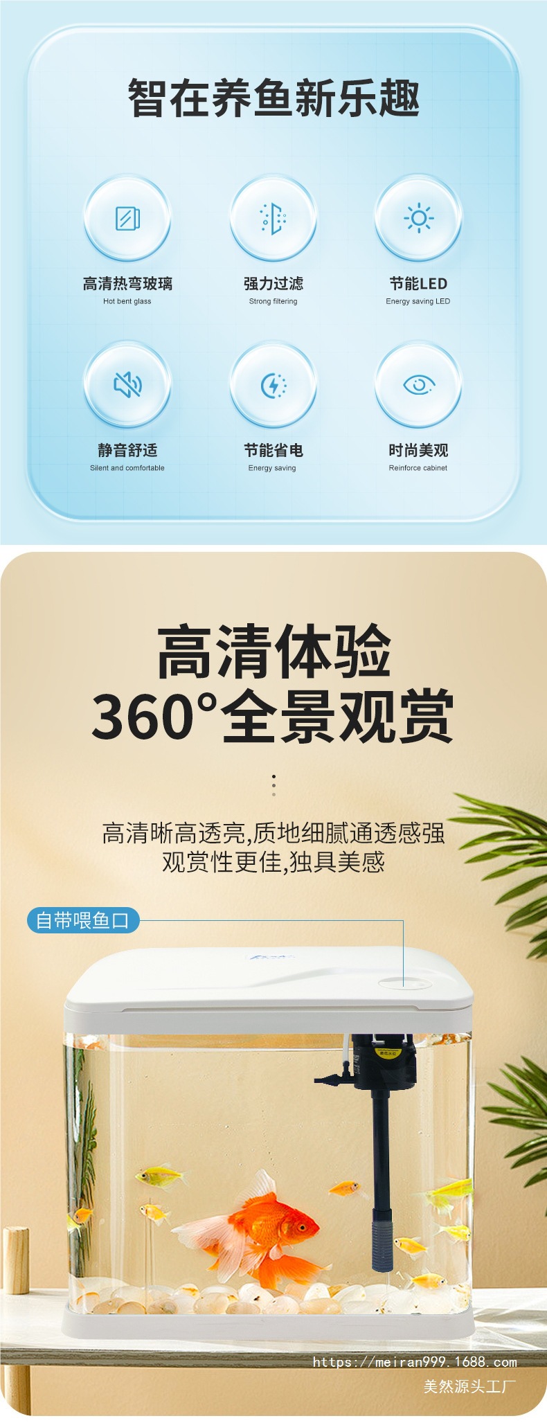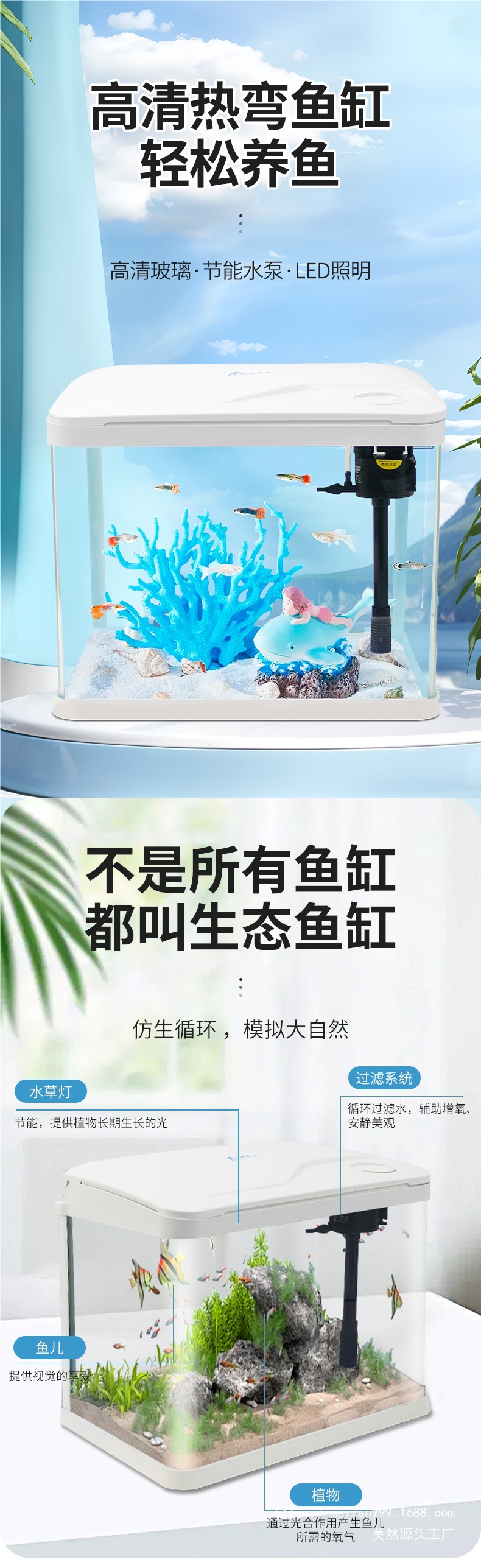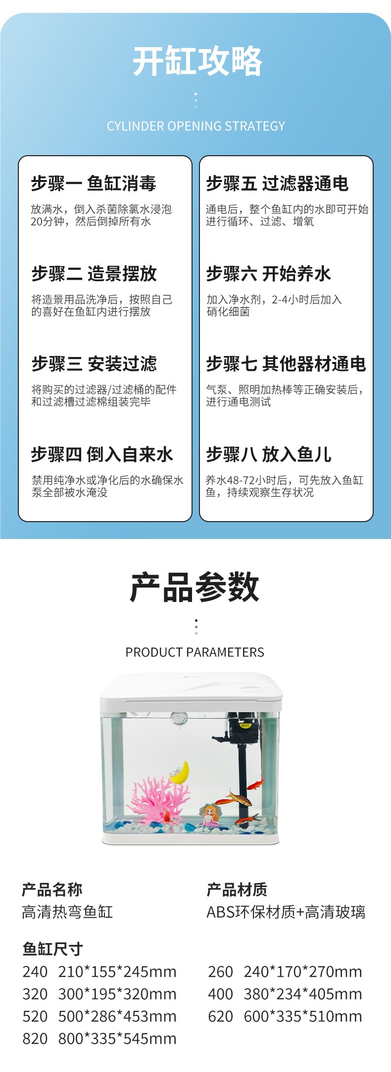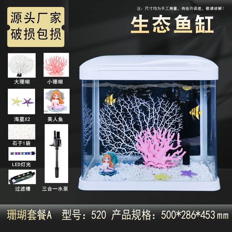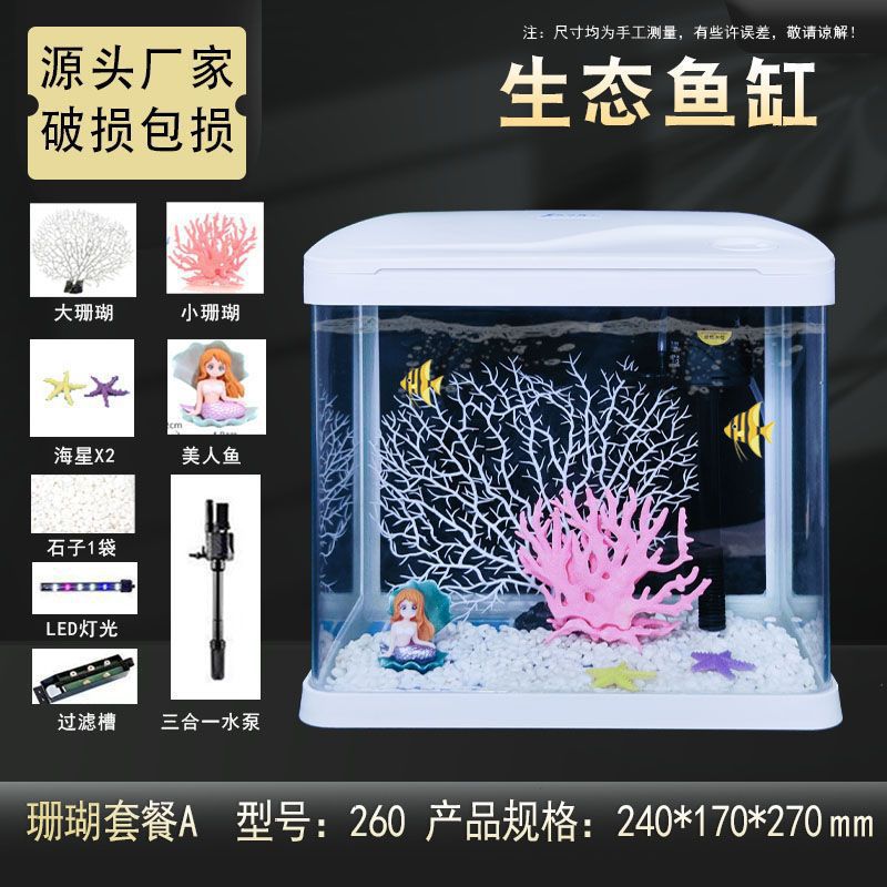뜨거운 구부러진 고화질 유리 수조 거실 소형 가정용 데스크탑 물 교환 없음 순환 생태 조경 수족관 도매스토어 가기