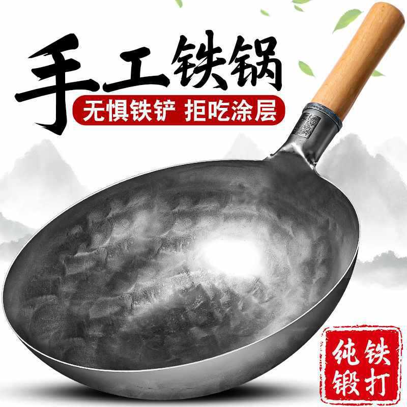 가정용 순수 수제 단조 구식 철 냄비 Zhangqiu 요리 냄비 장인의 철 없는 냄비