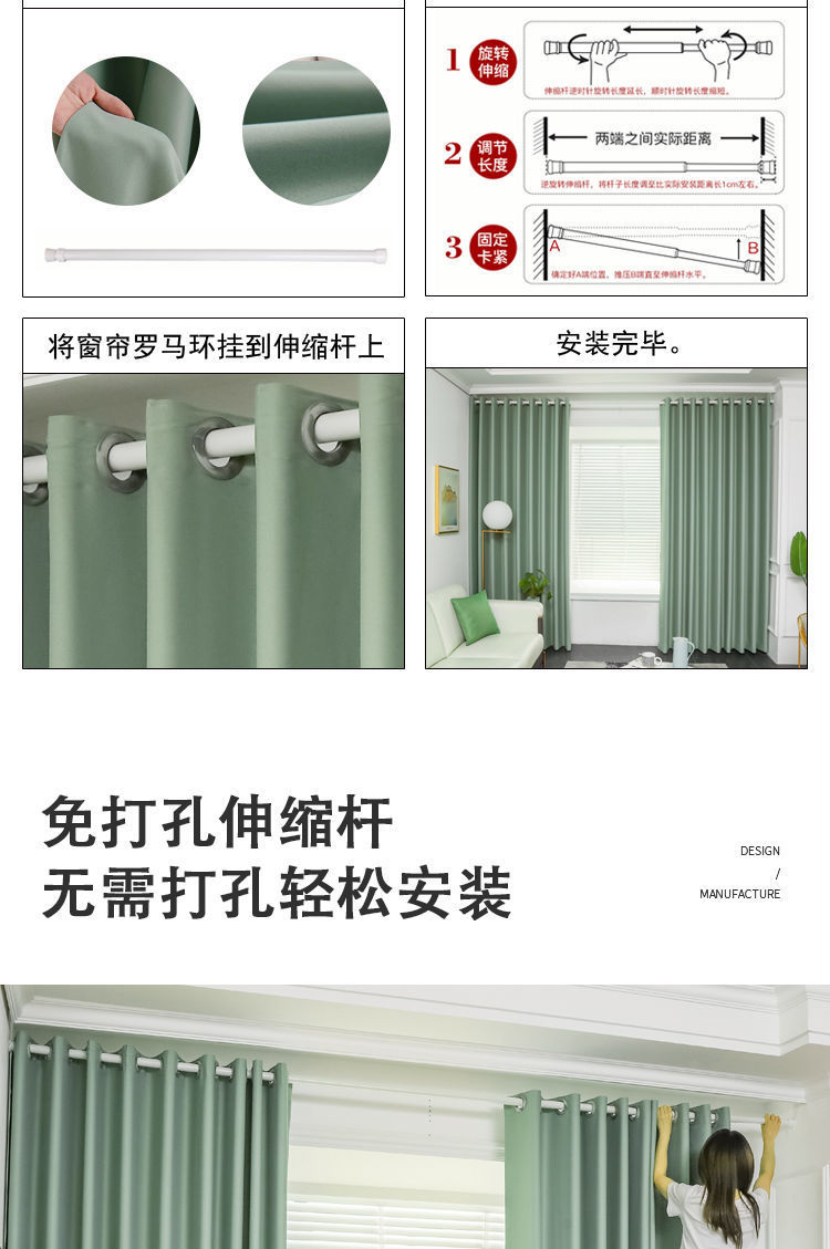 침실과 여자 방을 위한 펀치 없는 설치가 가능한 텔레스코픽 로드 커튼, ins 스타일의 차양 커튼 세트
