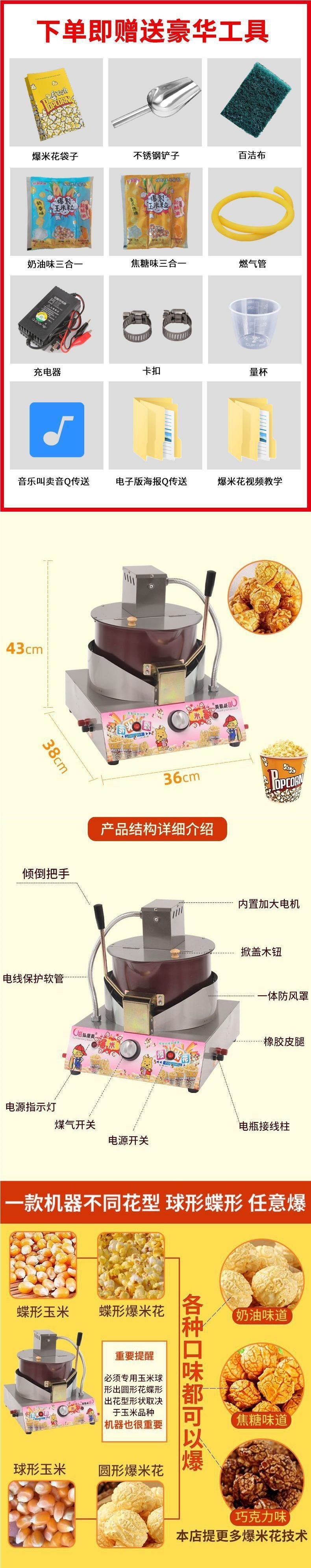상업용 팝콘 기계 가스 전기 팝콘 기계 구형 나비 자동 교반 팝콘 냄비