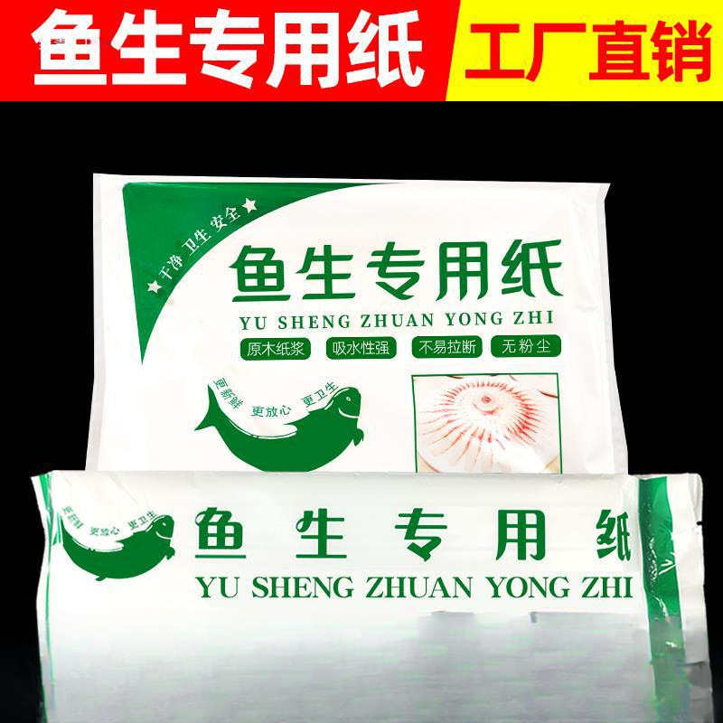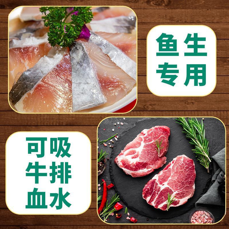 생선 종이 주방 종이는 물, 기름, 혈액을 흡수합니다. 스테이크 신선한 사시미 연어 필레