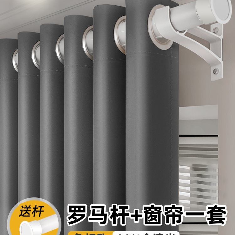 침실 완전 암막 커튼, 커튼 레일 설치를 위한 구멍 뚫기 없음, 임대 주택용 전체 세트, 2025년 새로운 스타일의 창문 차양스토어 가기