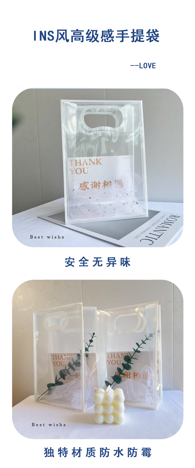 PP 인터넷 연예인 INS 스타일 투명 핸드백 생일 선물 가방 계몽 연회 선물 가방스토어 가기