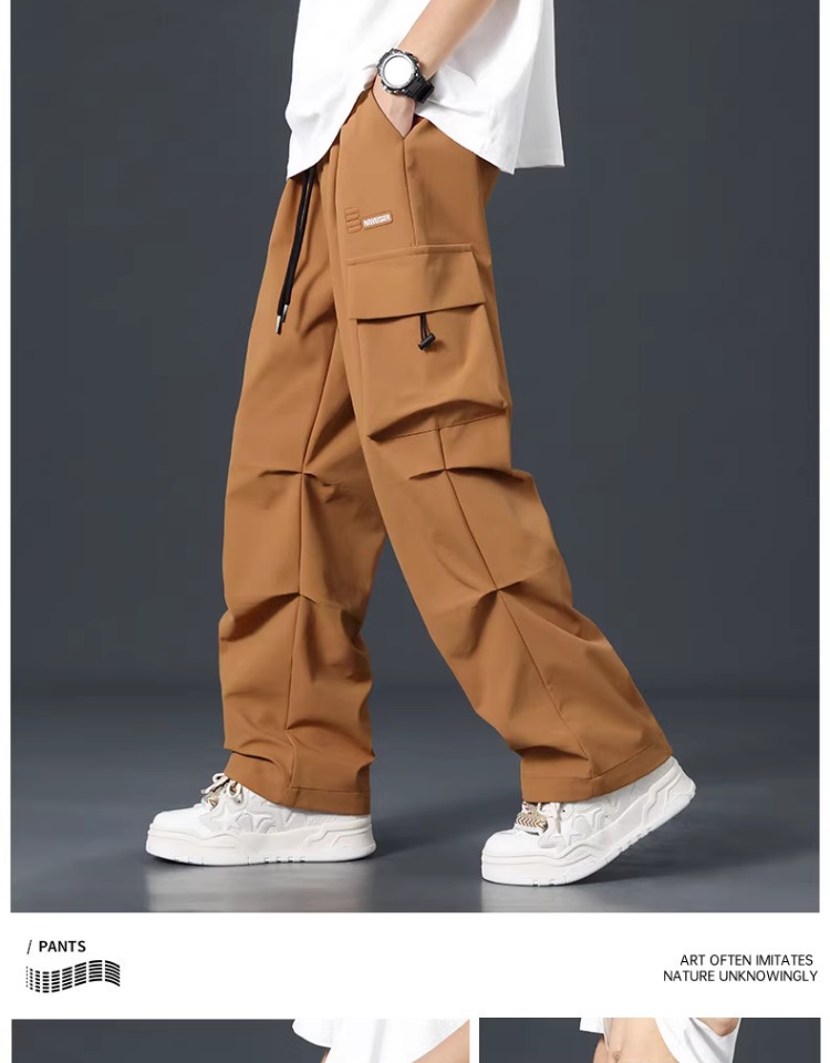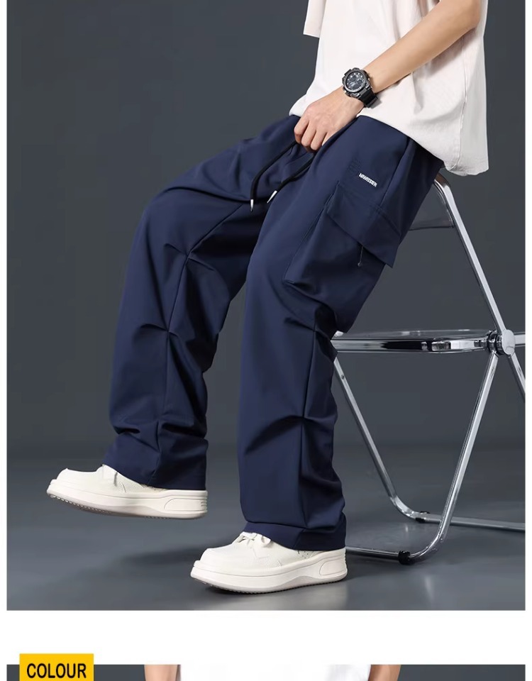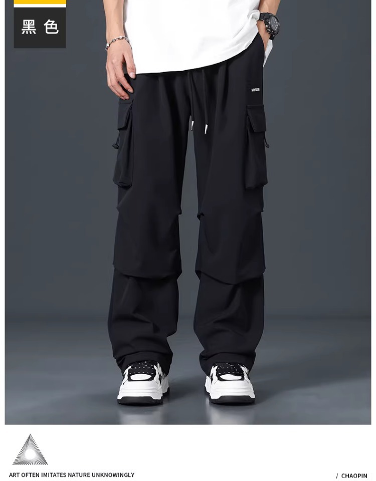 아메리칸 하이 스트리트 학생 낙하산 바지 남성 여름 트렌디 아이스 실크 얇은 충전 속건 스포츠 캐주얼 바지