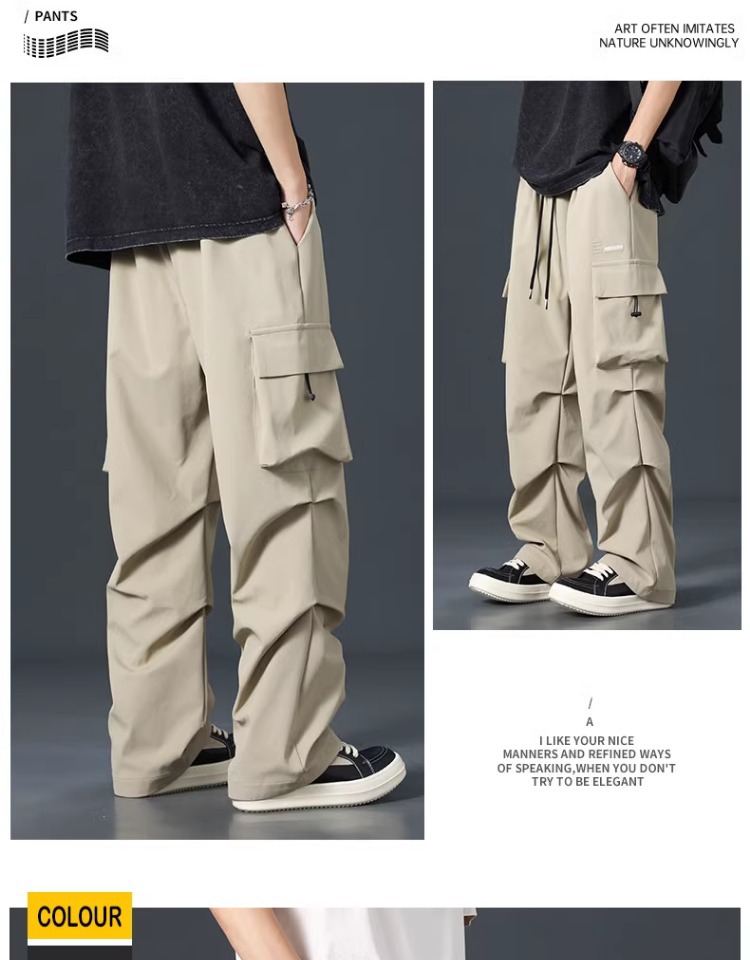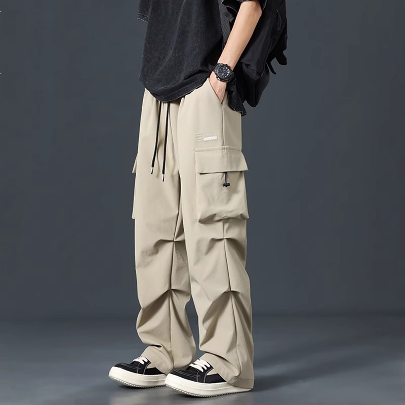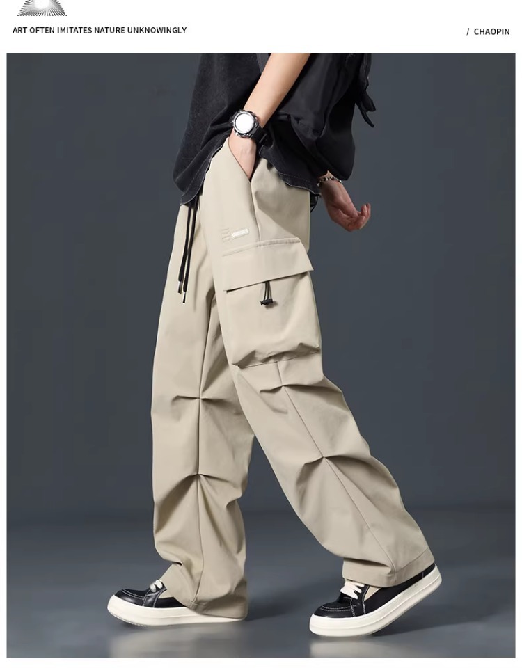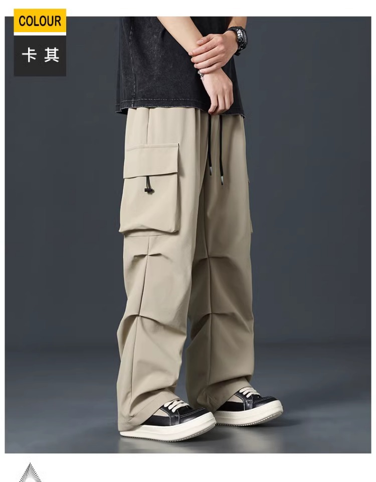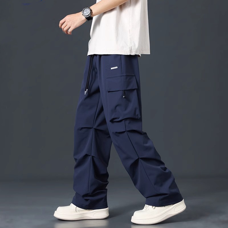 아메리칸 하이 스트리트 학생 낙하산 바지 남성 여름 트렌디 아이스 실크 얇은 충전 속건 스포츠 캐주얼 바지스토어 가기