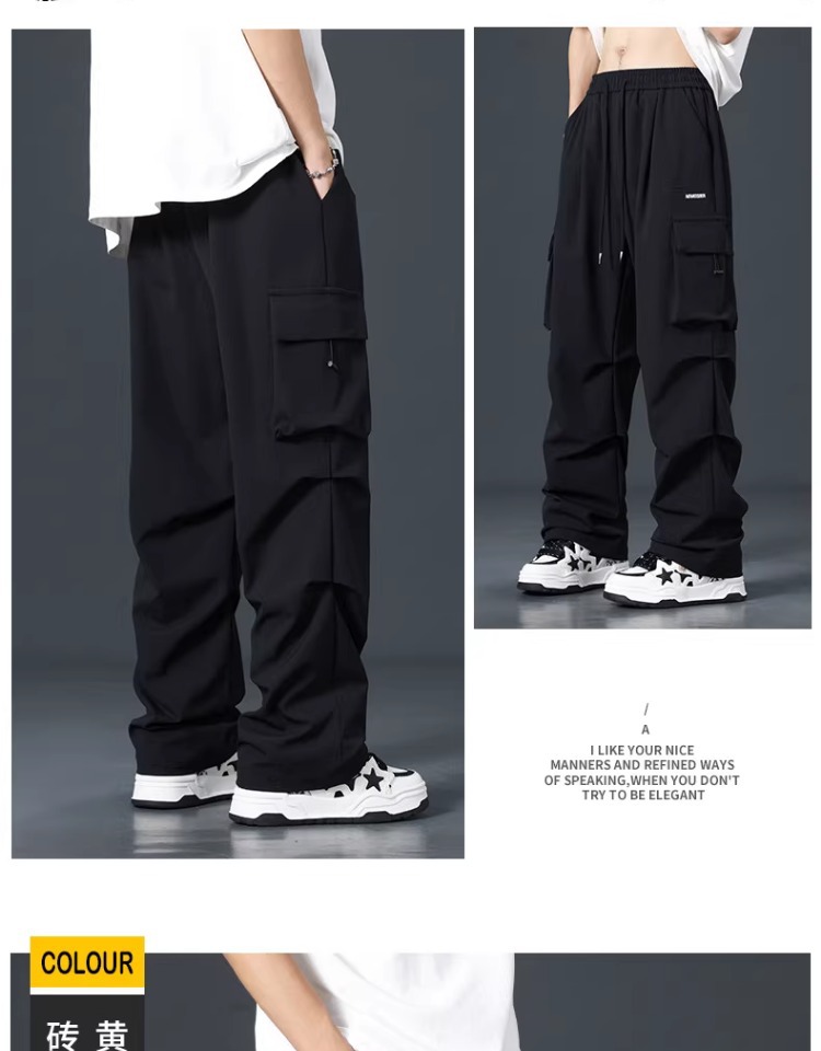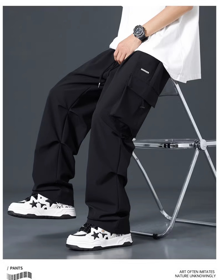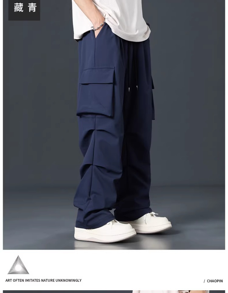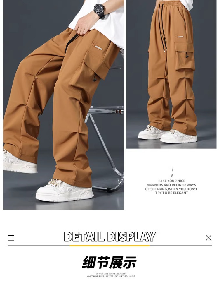 아메리칸 하이 스트리트 학생 낙하산 바지 남성 여름 트렌디 아이스 실크 얇은 충전 속건 스포츠 캐주얼 바지스토어 가기