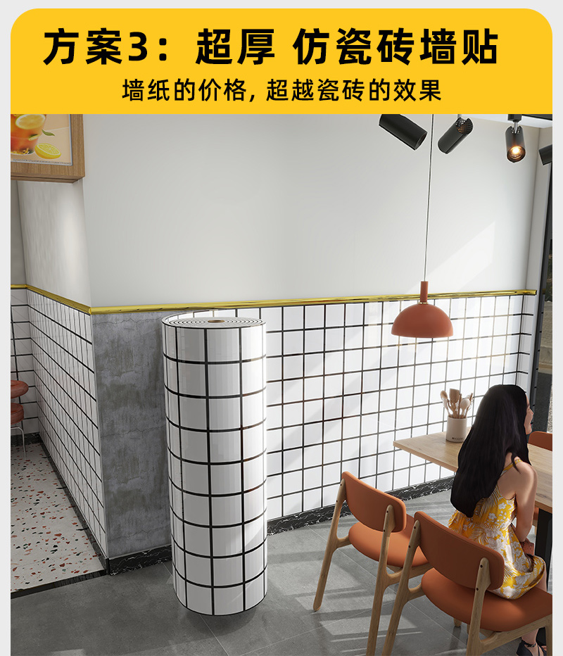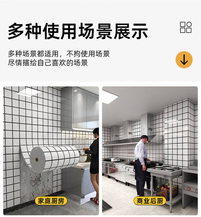 벽지 자체 접착 흑백 격자 상업용 케이터링 모조 타일 벽 스티커 주방 벽지 상점 장식 벽 스커트 벽 패널