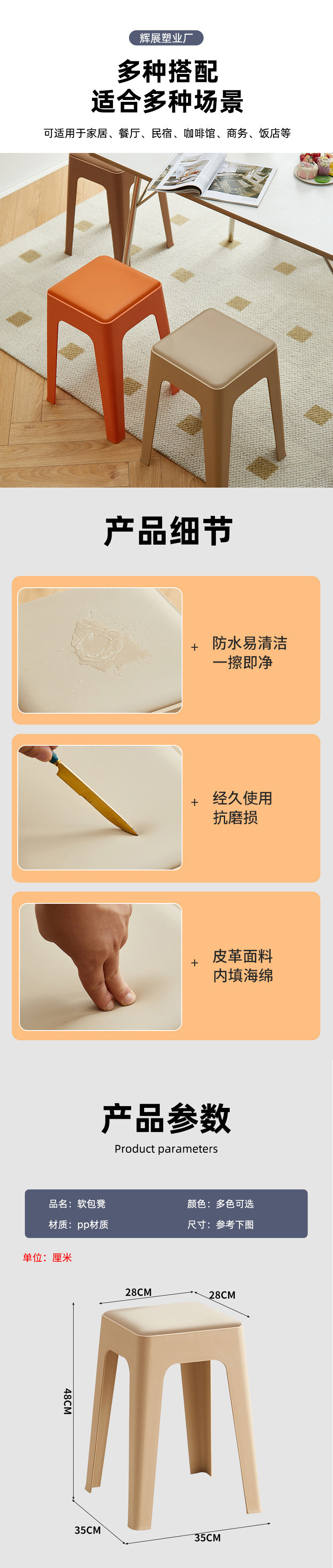 플라스틱 의자, 가정용 쌓을 수 있는 두꺼운 부드러운 사각형 의자, 편리한 보관, 간단한 높은 벤치, 미끄럼 방지 식탁 및 의자