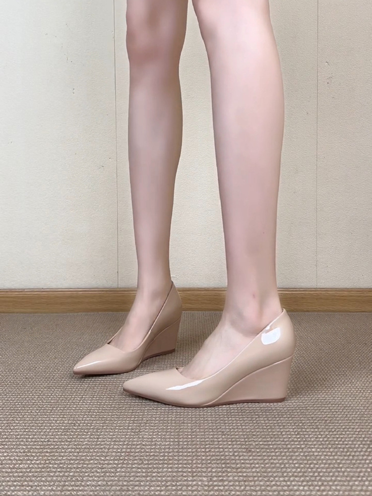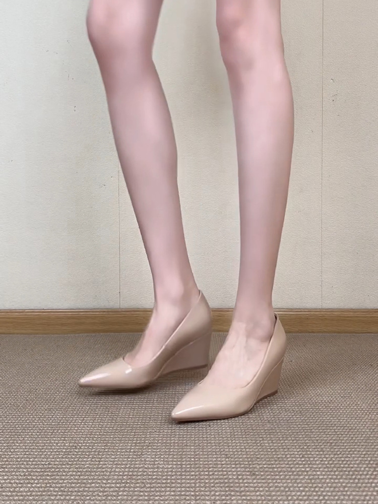 누드 웨지힐, 여성용 뾰족코 하이힐, 2025년 신상 스타일, 스커트, 우아한 슈즈, 프렌치 메리제인 슈즈스토어 가기