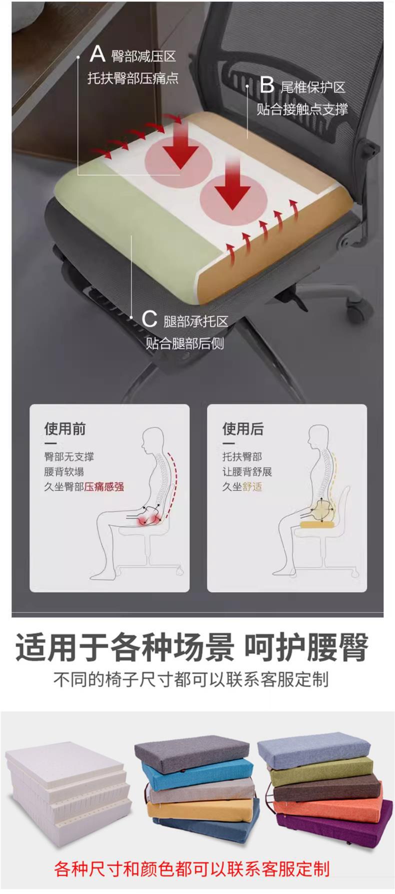 쿠션 라텍스 엉덩이 쿠션 사무실 좌식 의자 쿠션 학생 교실 부드러운 쿠션 자동차 두꺼워지고 높이가 높은 사계절 시트 쿠션