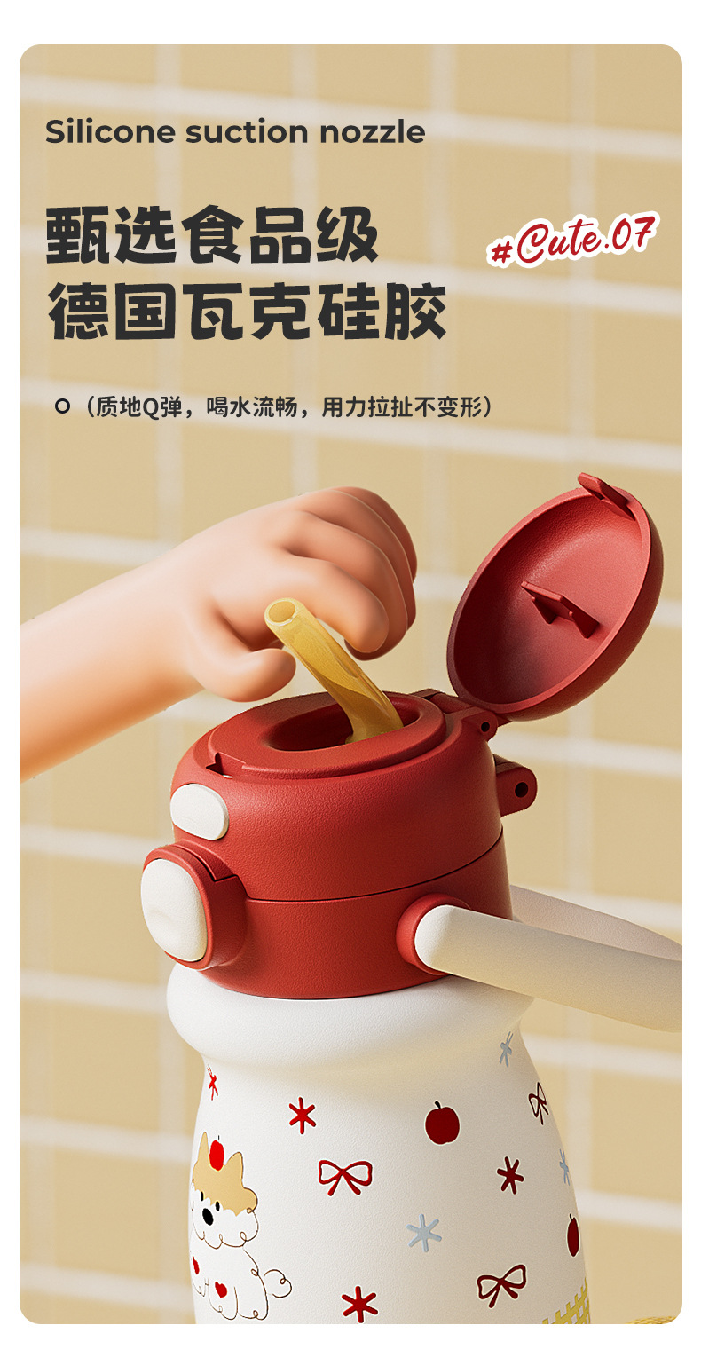 작은 강아지 만화 시리즈 어린이 물 컵 316 스테인레스 스틸 보온병 컵 학생 특수 바운스 밀짚 컵