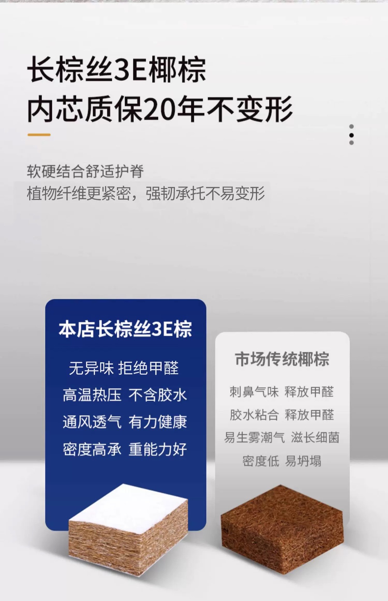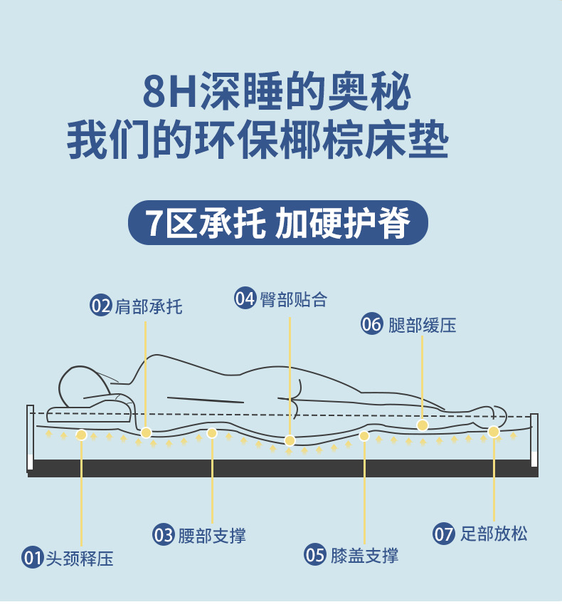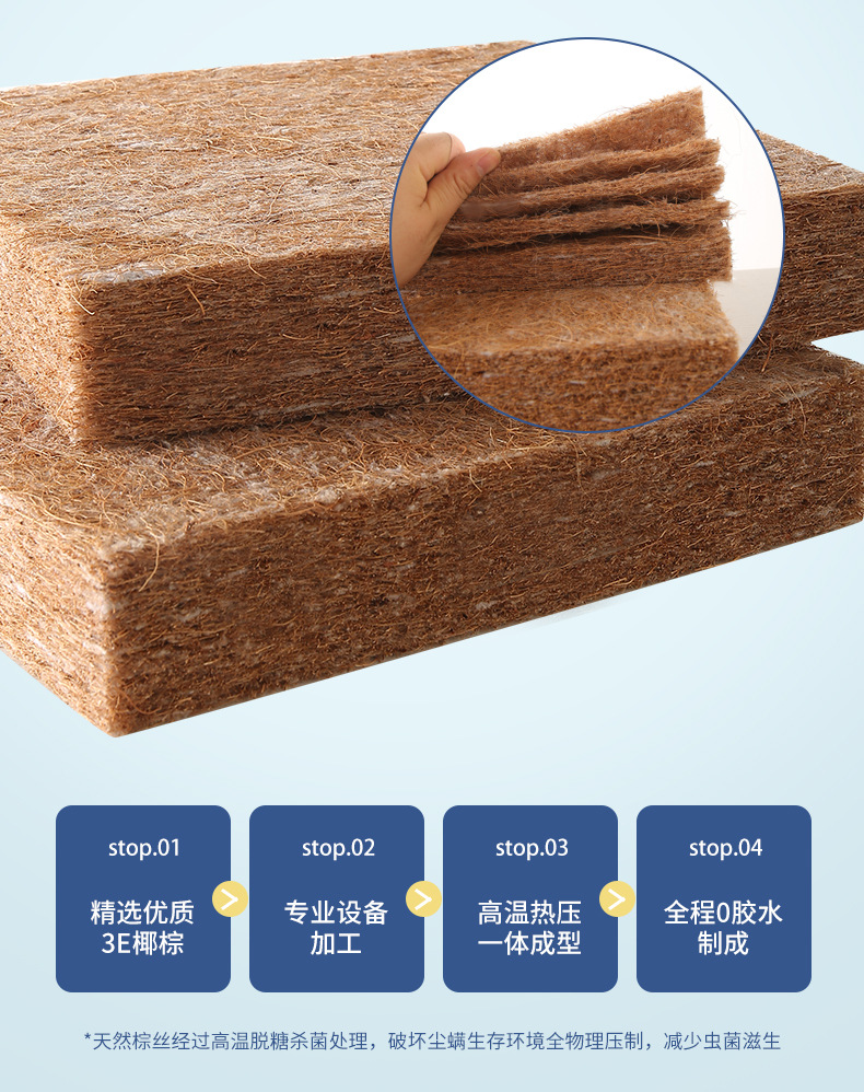 • 두께 8cm (진드기 방지 클라우드 화이트 + 라텍스 1cm + 접착제 0 5cm 3E 코코넛 야자 + 반접기