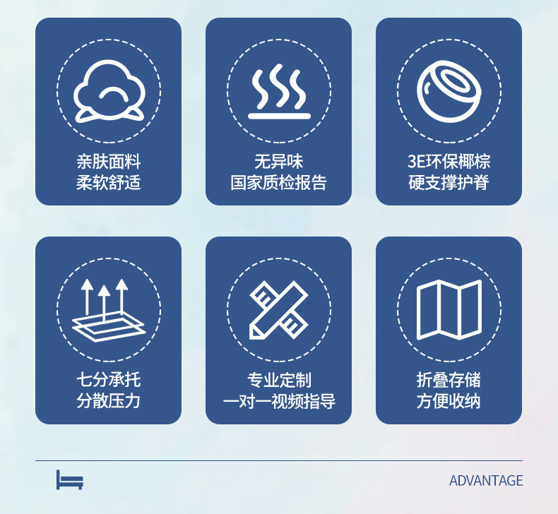• 두께 6cm (진드기 방지 클라우드 화이트 + 라텍스 1cm + 접착제 3cm 0 3E 코코넛 야자 + 반 접기