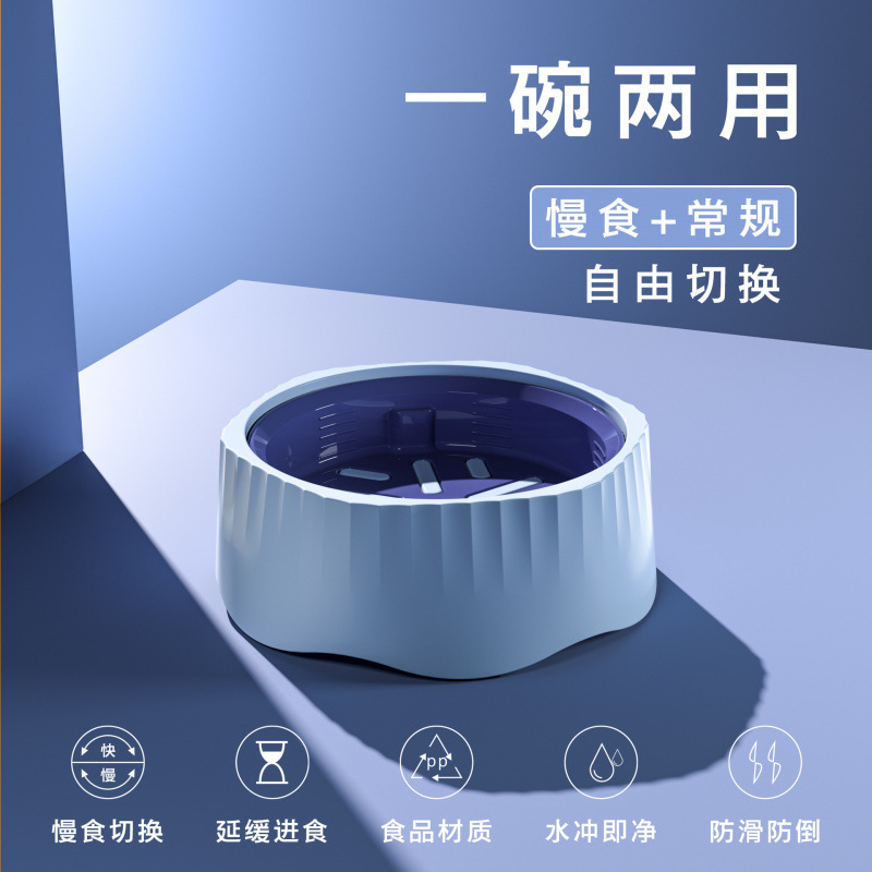 새로운 애완동물 그릇, 개 그릇, 개 사료 그릇, 느린 먹이 이중 목적 질식 방지 고양이 사료 그릇, 뒤집힘 방지 다기능 애완동물 그릇
