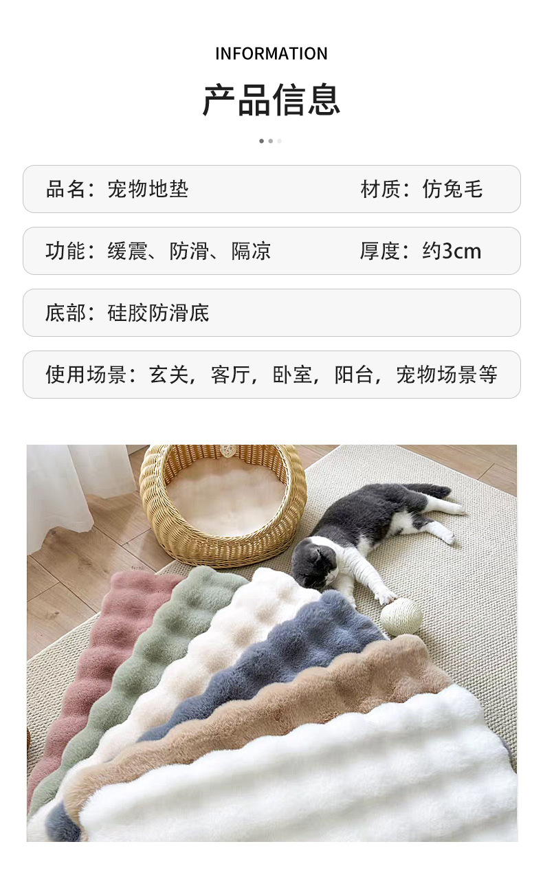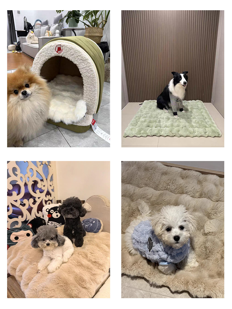 따뜻하고 미끄럼 방지 및 낙하 방지 버블 벨벳 애완 동물 바닥 매트, 고양이 및 개 매트, 사계절 범용 단색 플러시 고양이 개집 매트 및 개 개집 매트스토어 가기
