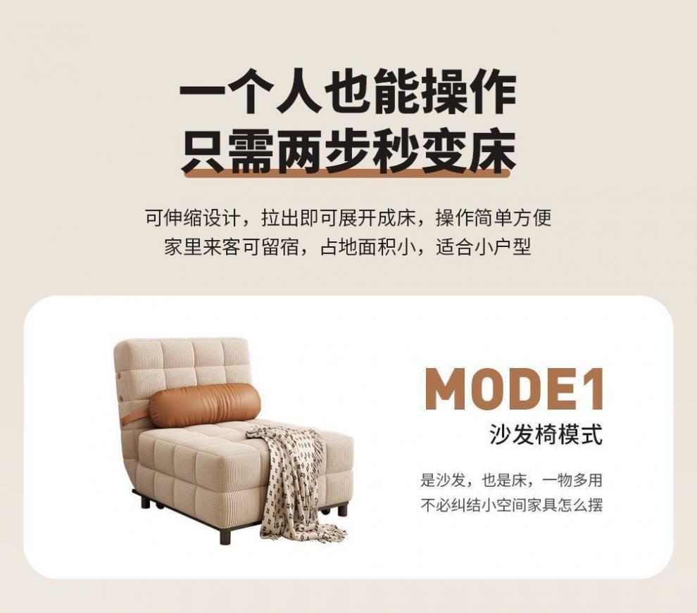 크림 복고풍 싱글 접이식 소파 베드 소파 작은 아파트 텔레스코픽 거실 다기능 이중 용도 새로운 스타일스토어 가기