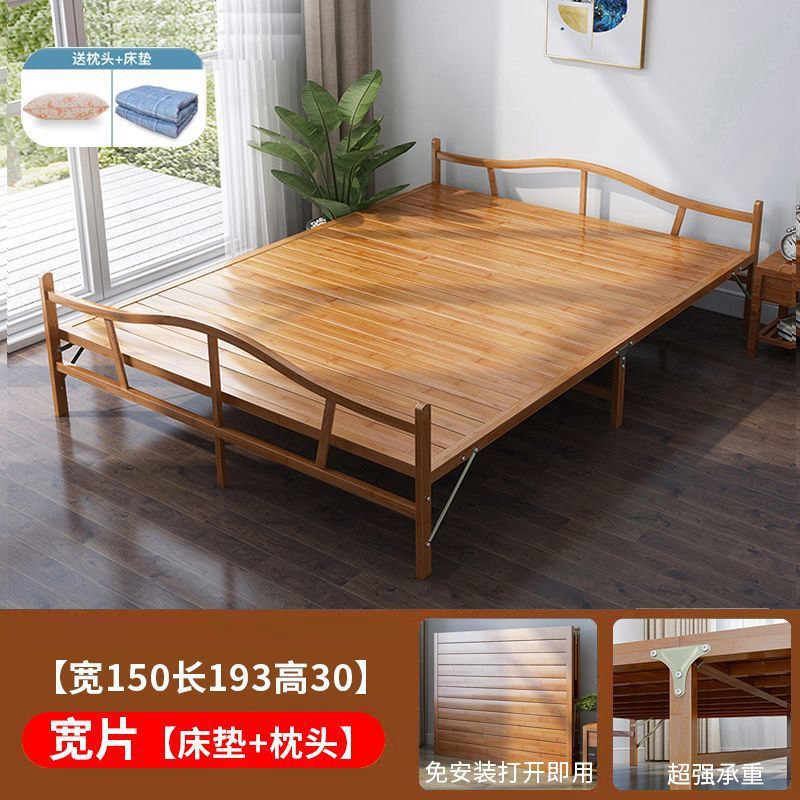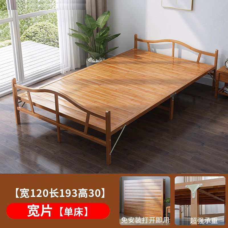 대나무 침대 접이식 침대 싱글 더블 홈 점심 시간 시원한 침대 성인 임대 주택 간단한 단단한 나무 침대 대나무 침대스토어 가기