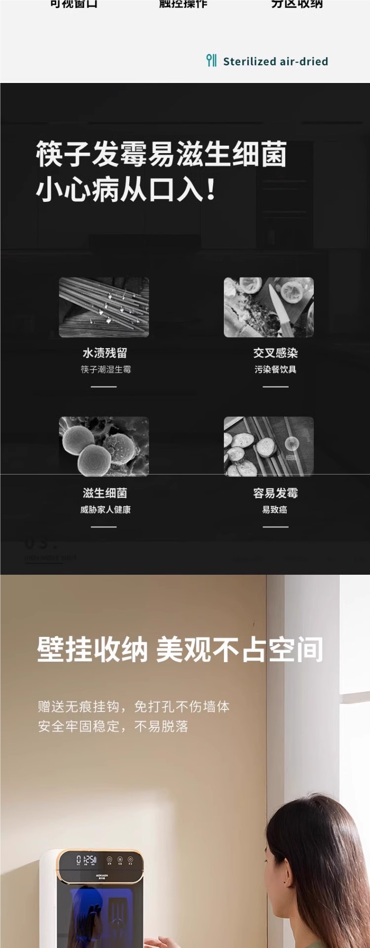 젓가락 소독 및 건조 일체형 기계 소독 젓가락 통 벽걸이형 가정용 소형 고급형 신형 스마트 고속 보관함스토어 가기