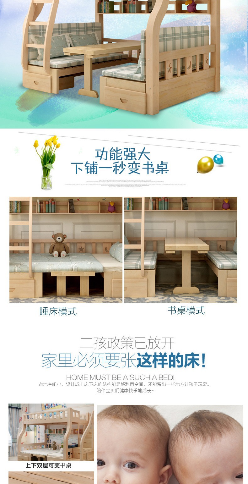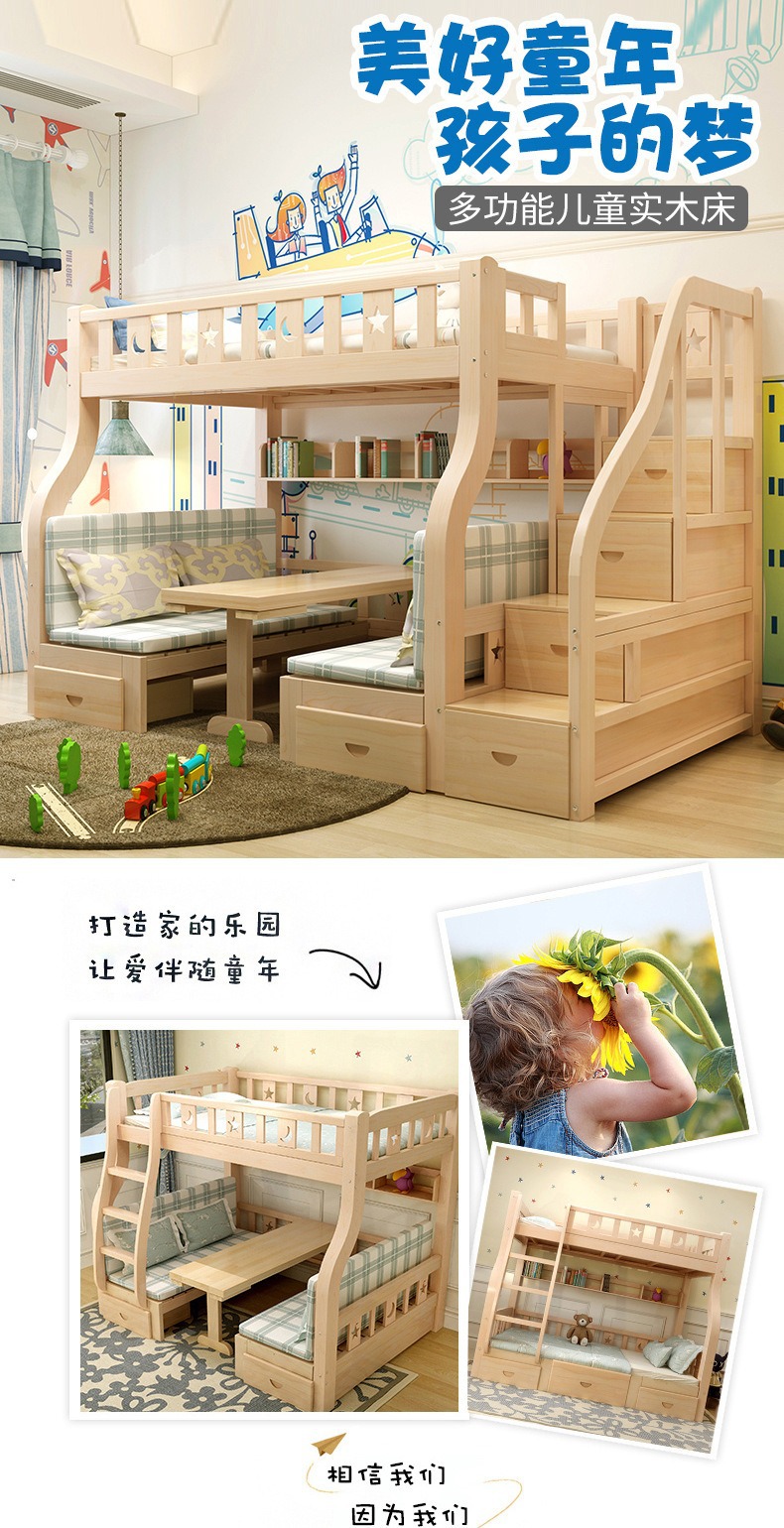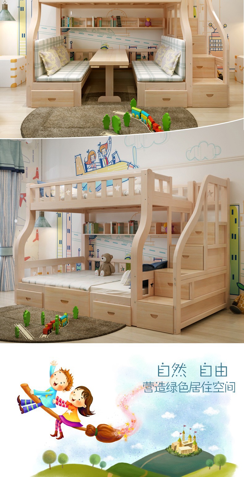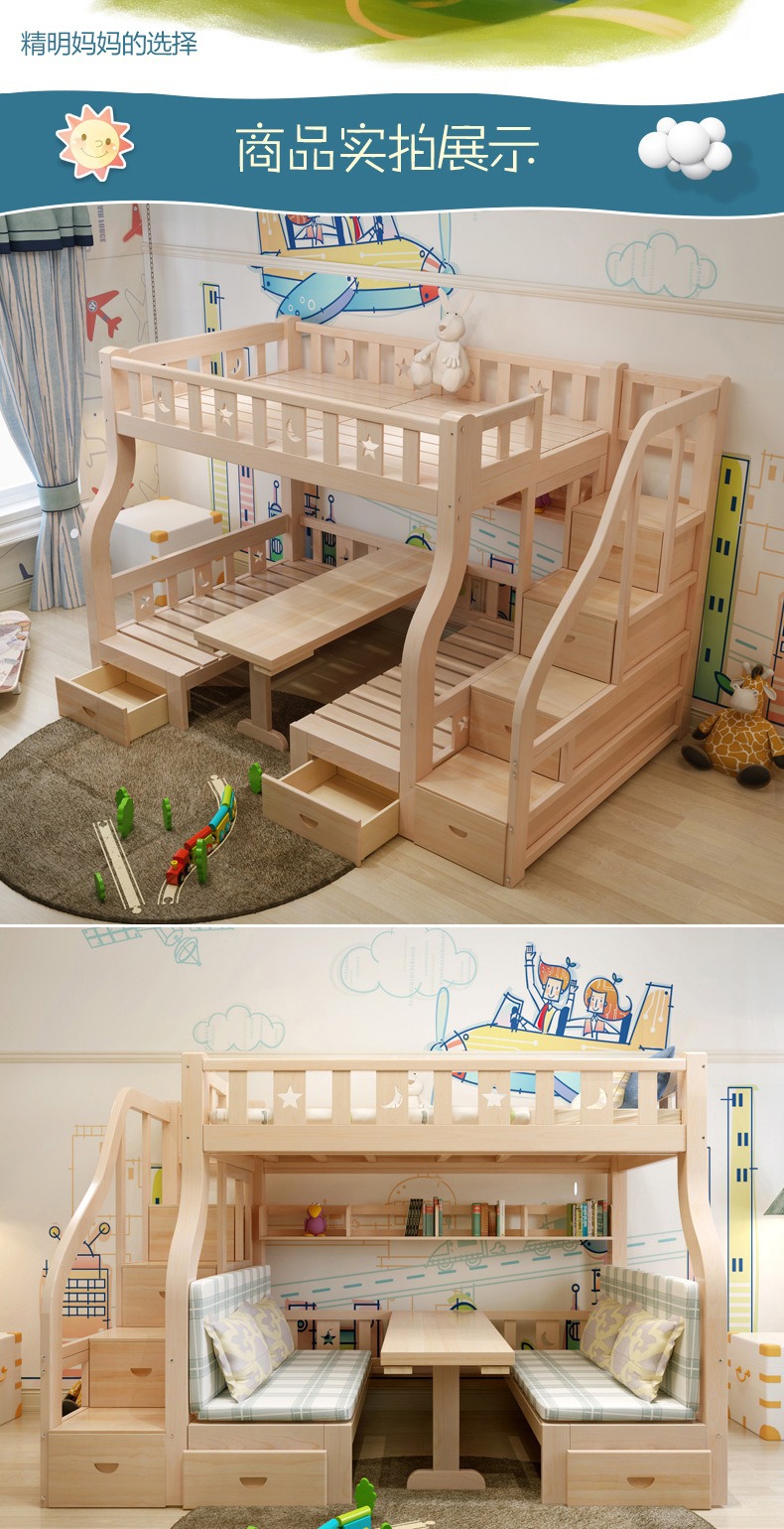 소형 아파트용 원목 이층침대, 다기능 이층침대, 2층 이층침대, 이층침대, 높낮이침대