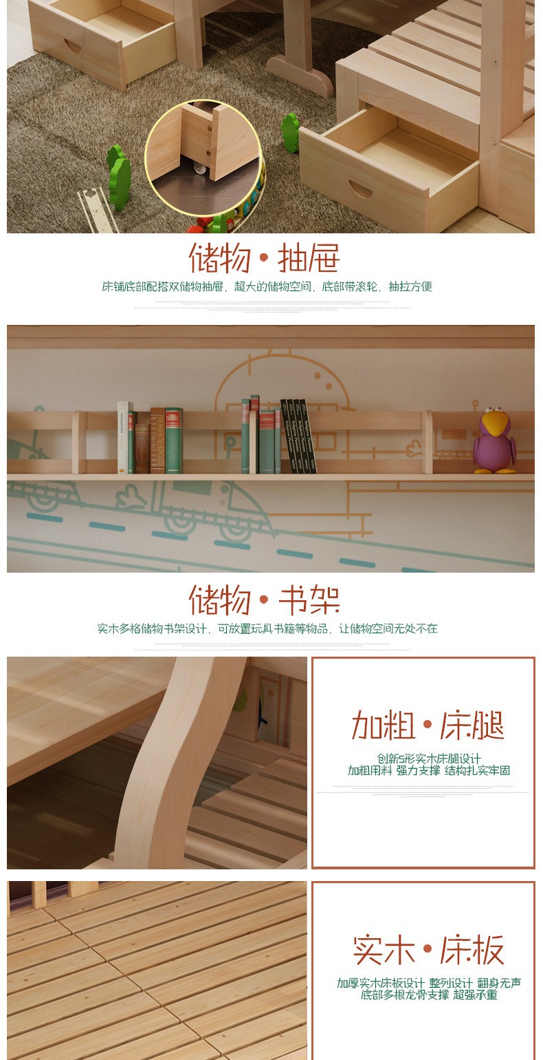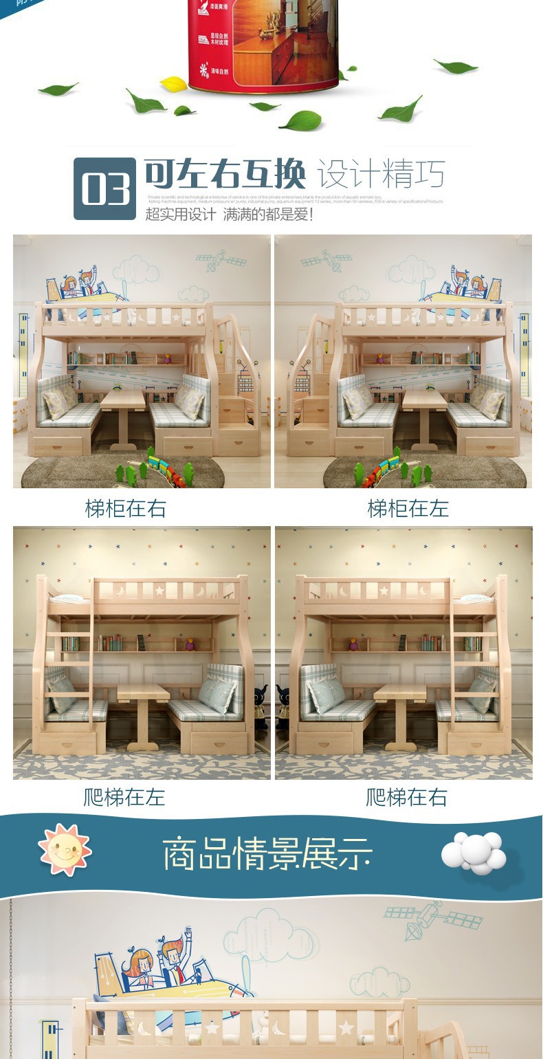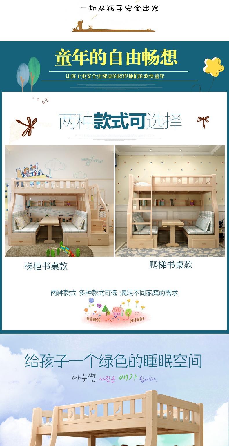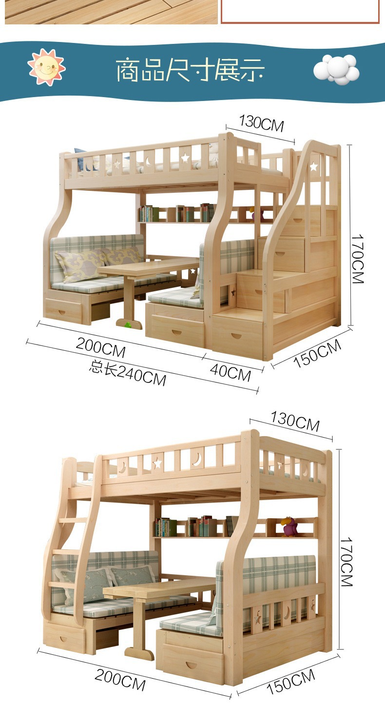 소형 아파트용 원목 이층침대, 다기능 이층침대, 2층 이층침대, 이층침대, 높낮이침대