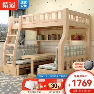 소형 아파트용 원목 이층침대, 다기능 이층침대, 2층 이층침대, 이층침대, 높낮이침대스토어 가기