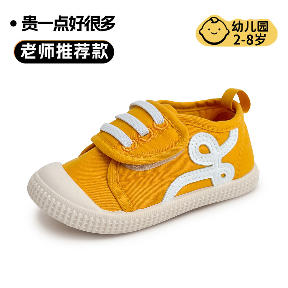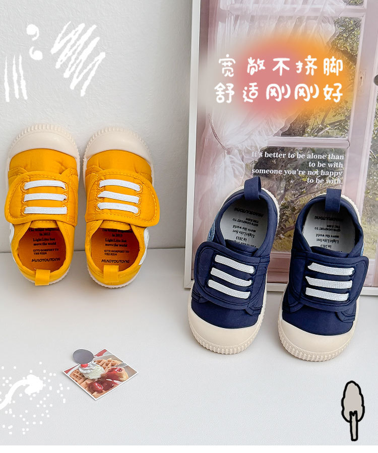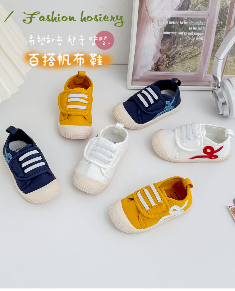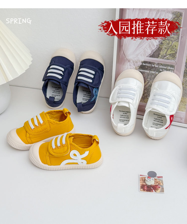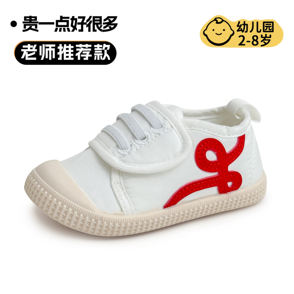 아기 어린이 신발 유치원 실내 소년과 소녀 흰색 신발 사계절 부드러운 밑창 다목적 한국 벨크로 캔버스 신발