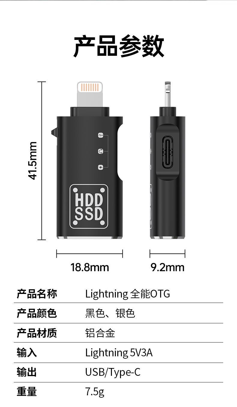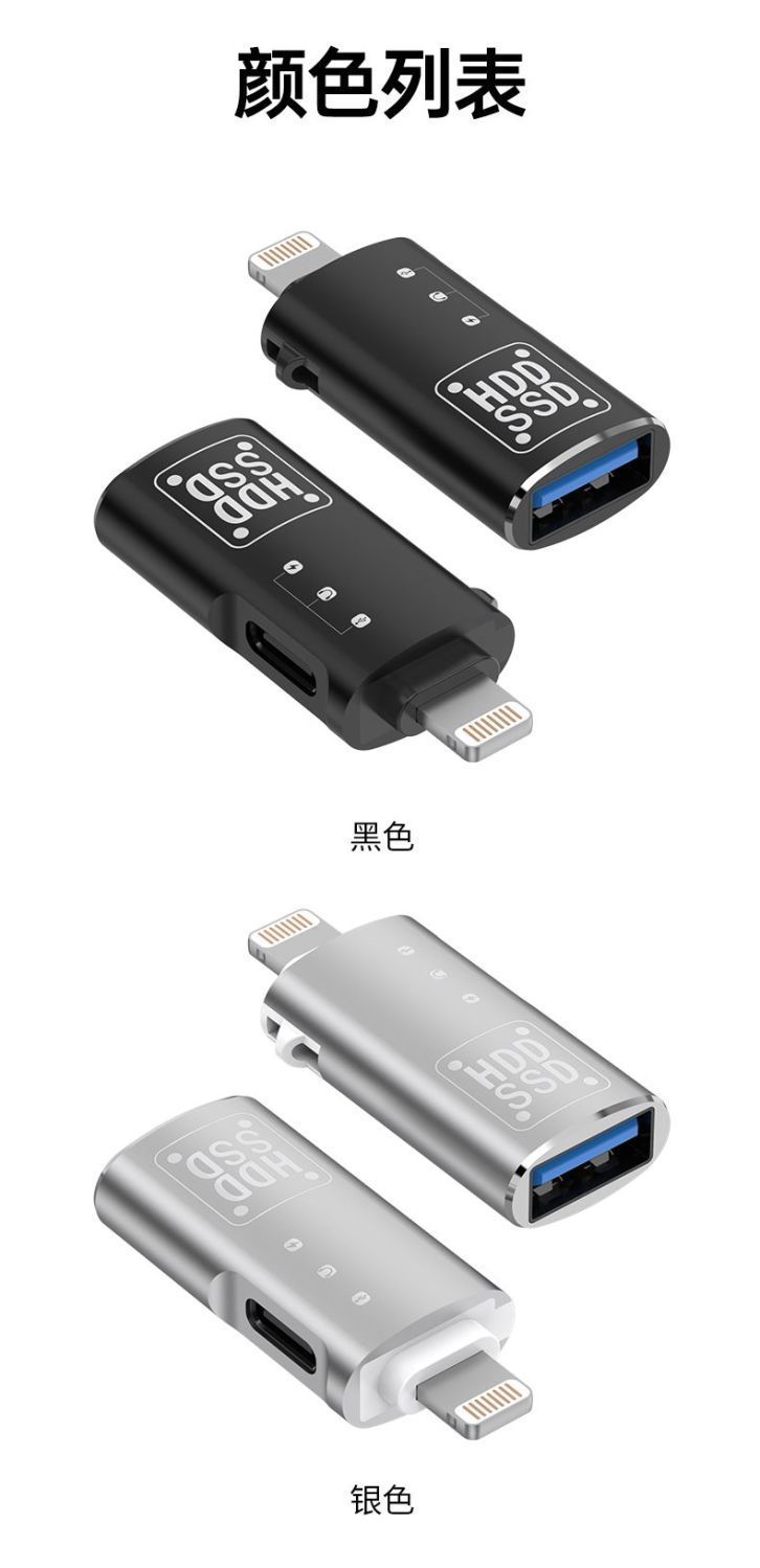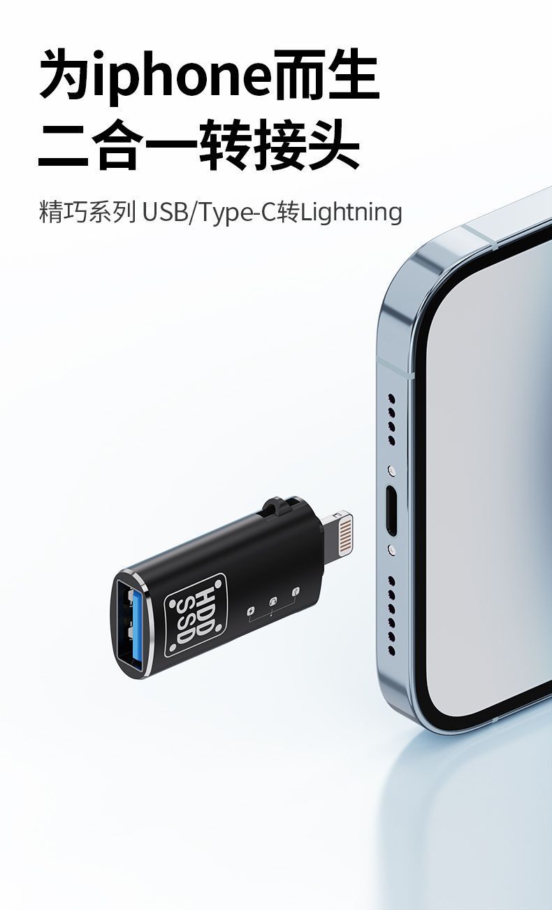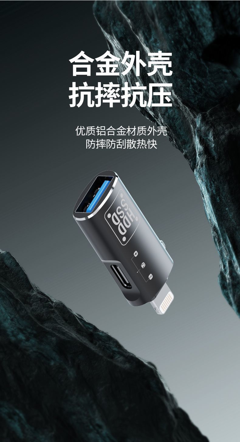 금속 OTG 어댑터 Type-C-Lightning 2-in-1 충전식 전송 하드 드라이브 변환기 범용