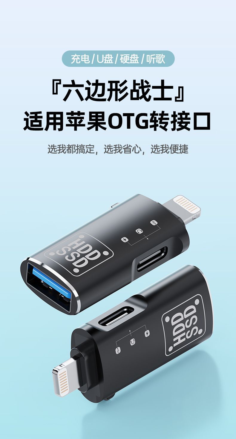 금속 OTG 어댑터 Type-C-Lightning 2-in-1 충전식 전송 하드 드라이브 변환기 범용스토어 가기