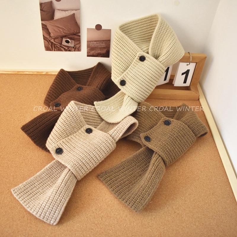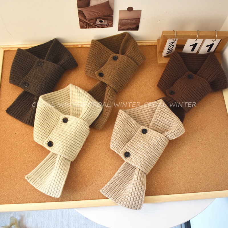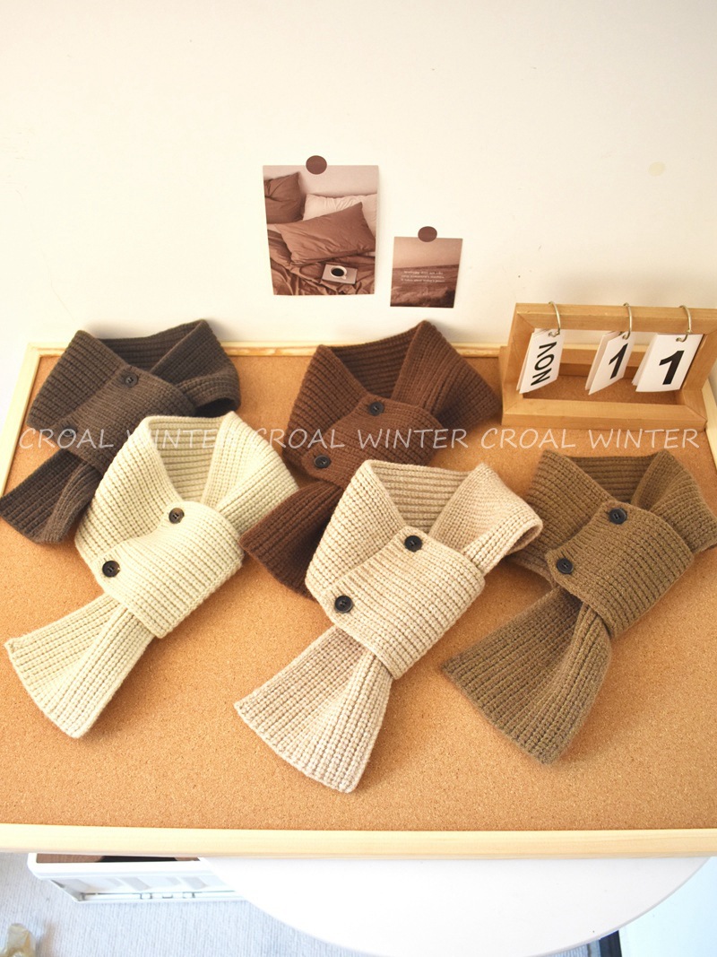 한국 인터넷 연예인 버튼 어린이 스카프 니트 스타일 소년 소녀 스카프 오목 모양 아기 목 커버 겨울