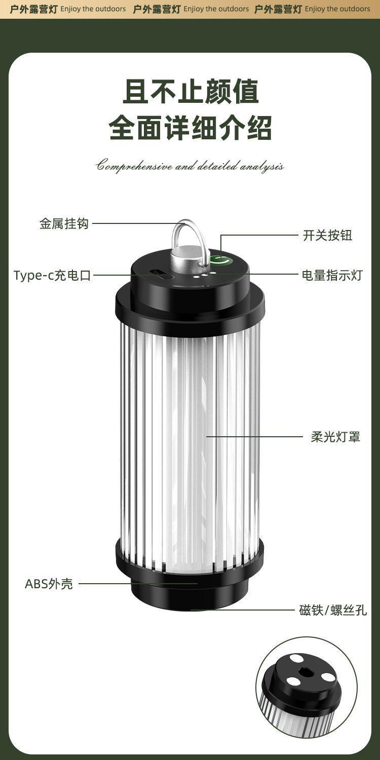 Douyin의 인기 있는 38등 야외 캠핑 텐트 조명, 소형 스티커, 휴대용 분위기 조명, 강력한 자기 흡착 및 긴 배터리 수명