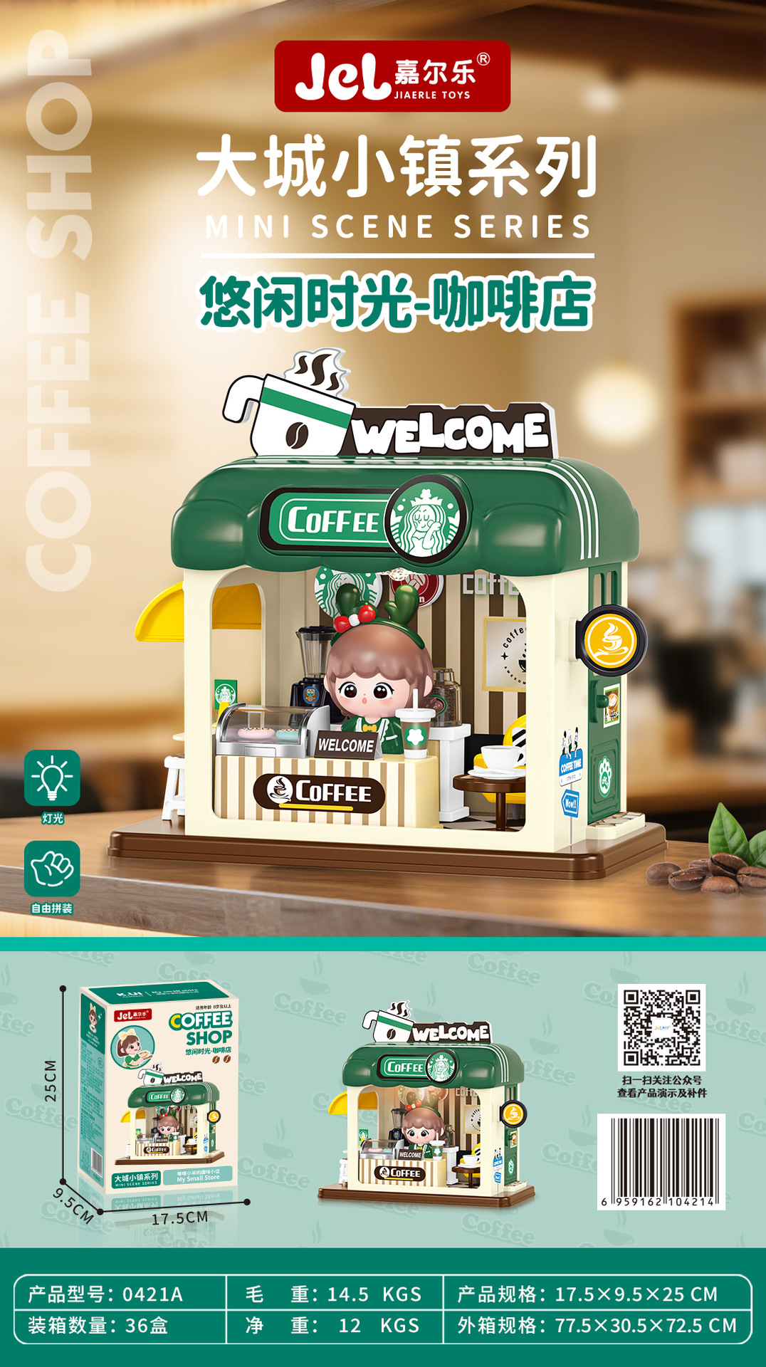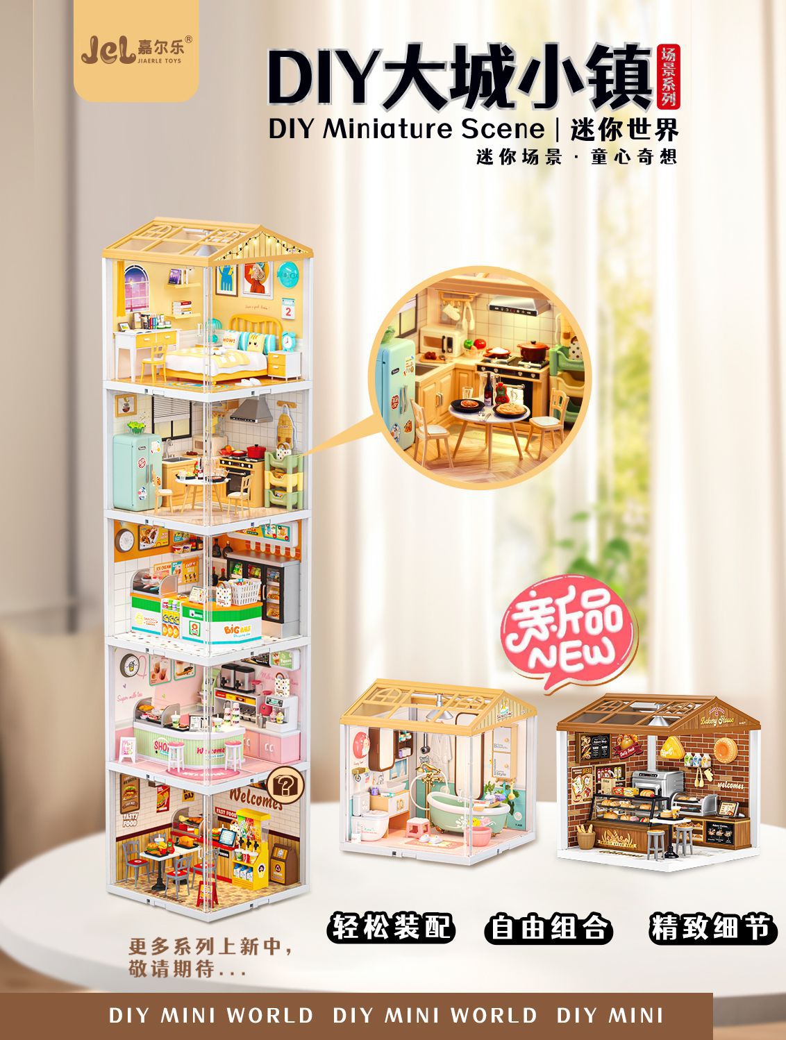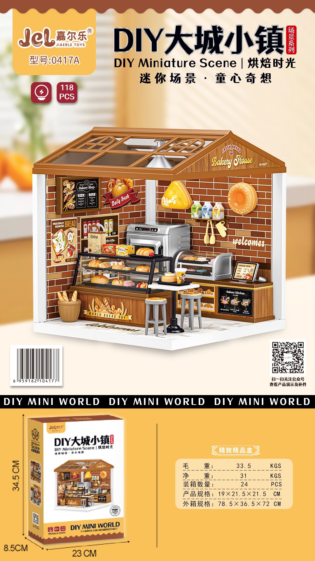DIY 대도시 따뜻한 침실 미니 주방 밀크 티 샵 장면 캐빈 조립 모델 빌딩 블록 장난감스토어 가기