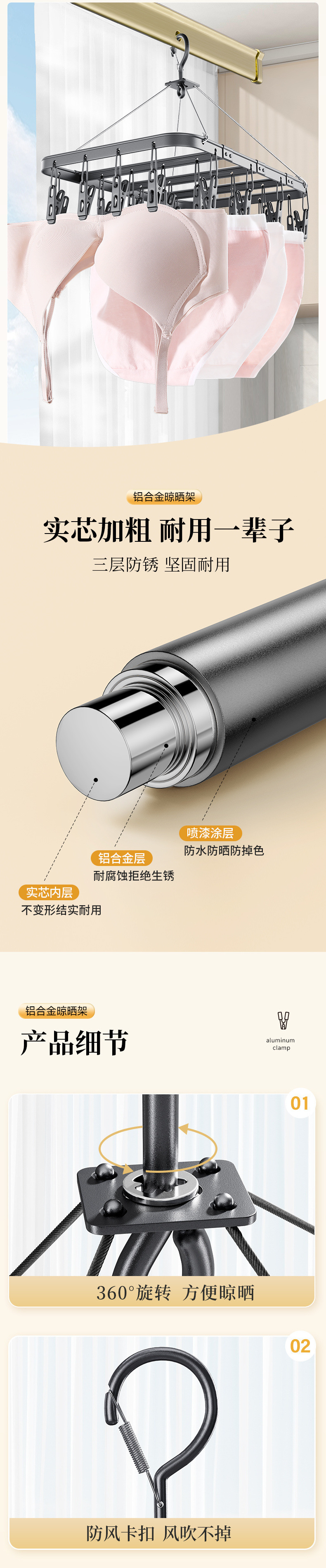 스테인레스 스틸 알루미늄 합금 양말 건조대 아기 건조대 멀티 클립 속옷 후크 홈 발코니