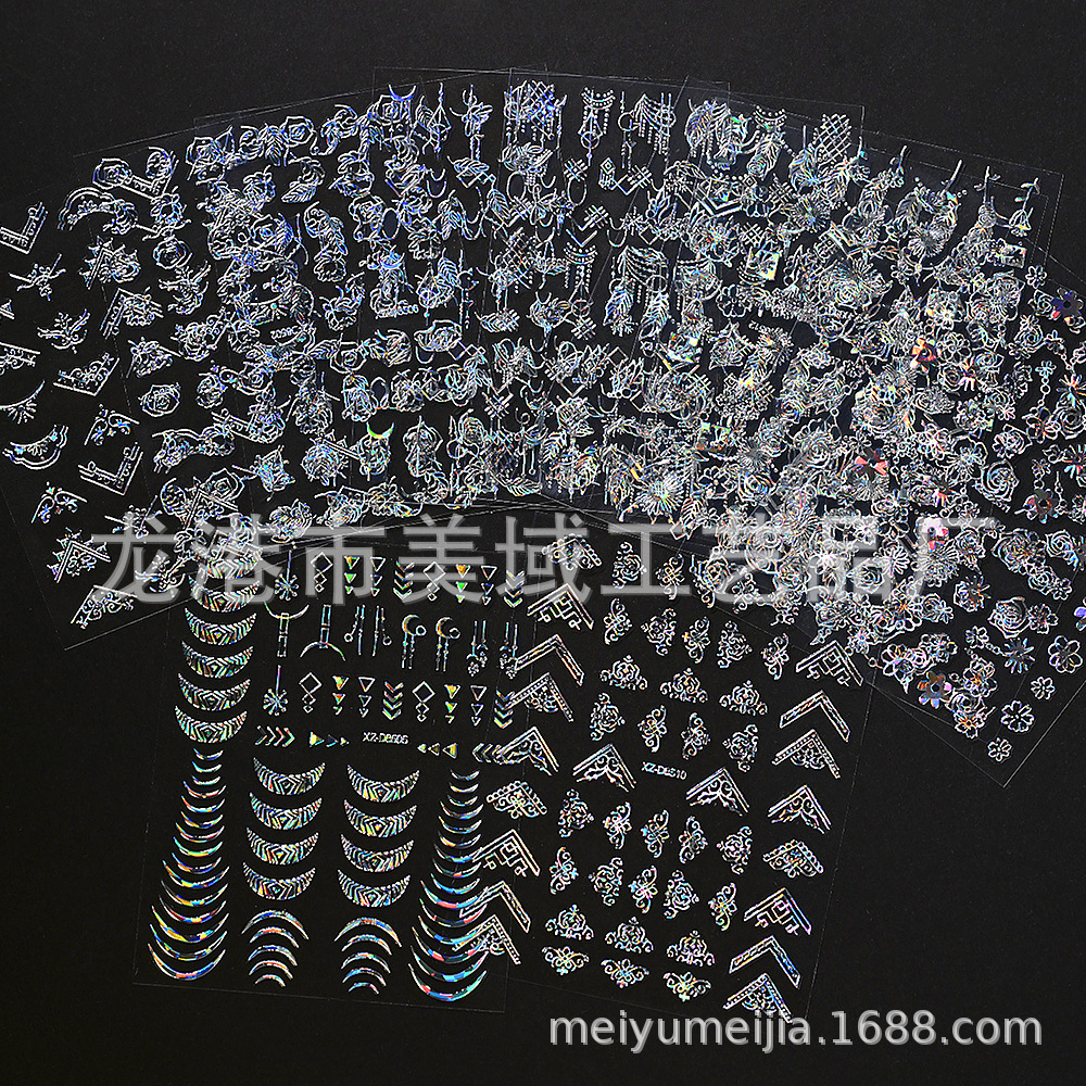 8 색 프랑스 꽃 라인 아트 네일 아트 스티커 12 비 반복적 인 간단한 현대 스타일 접착 네일 스티커스토어 가기