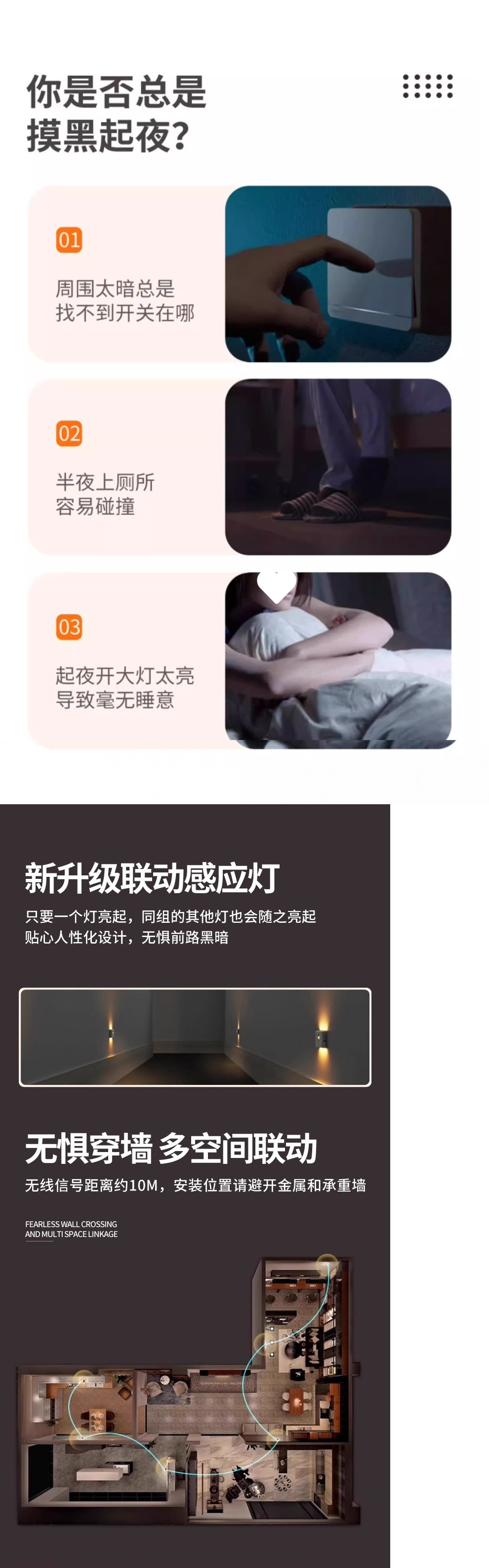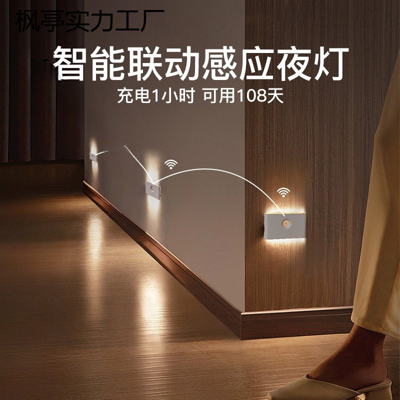연동 스마트 인체 센서 램프 통로 홈 복도 충전 측면 발광 센서 램프 침실 머리맡 야간 조명