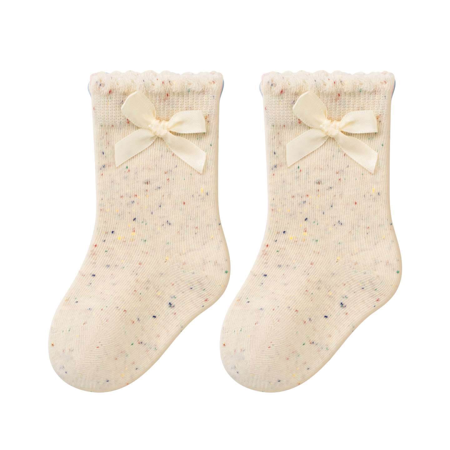 아기 양말 가을 신상품 A급 순면 무봉제 아기 리본 공주 양말 여아용 중목 양말