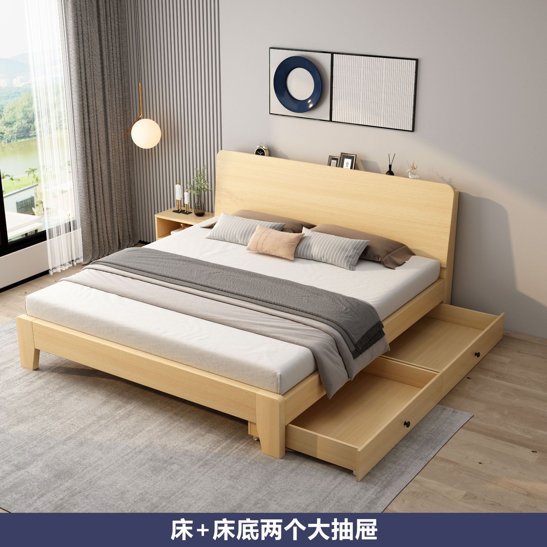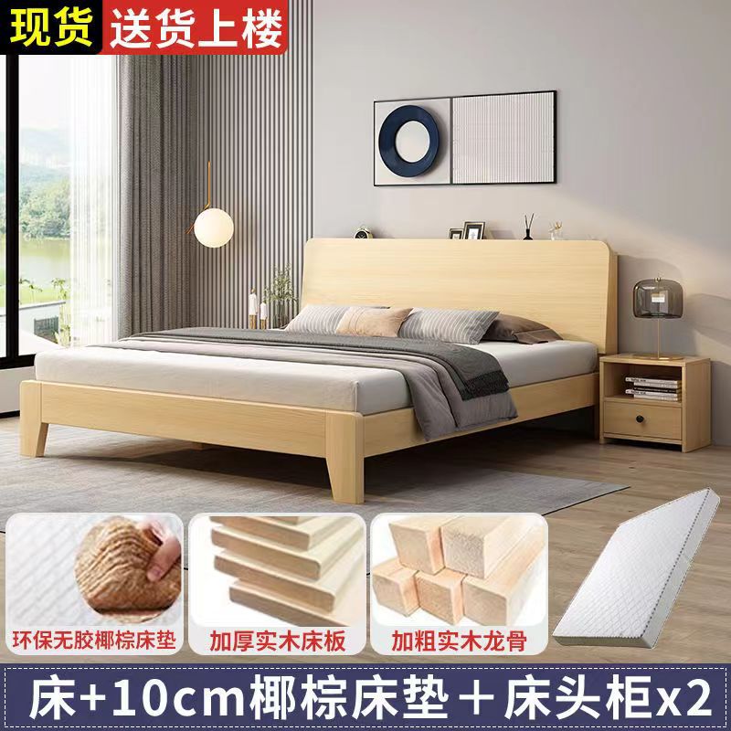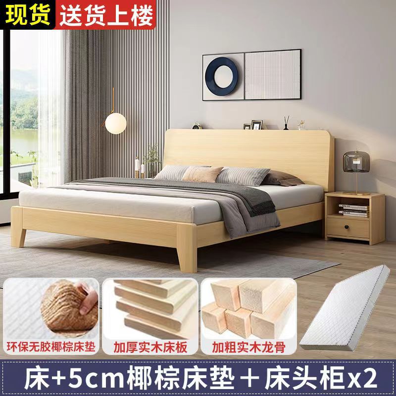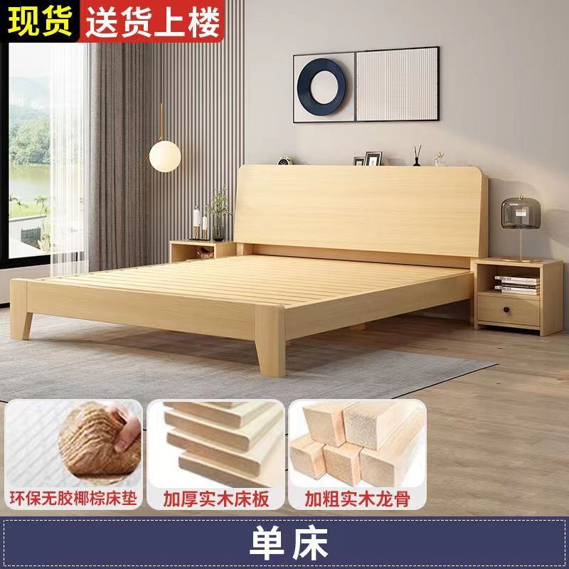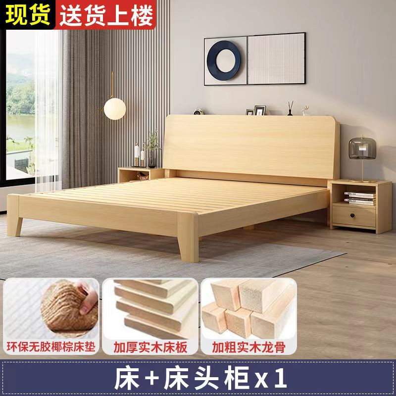 원목 침대 북유럽 스타일 더블 침대 마스터 침실 1.8 임대실 경제적인 대형 침대 1.5m 싱글 1.2m 침대 프레임스토어 가기