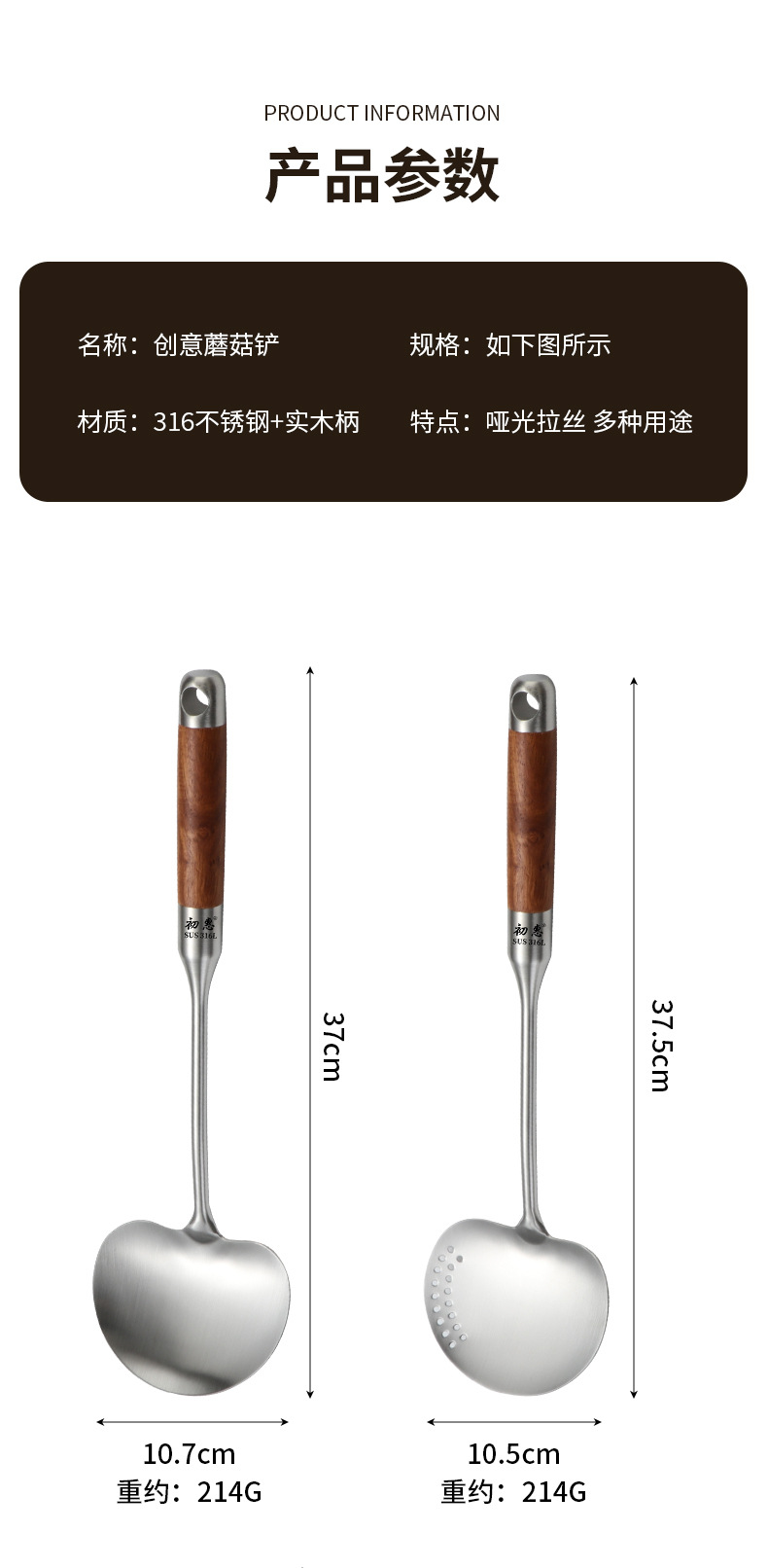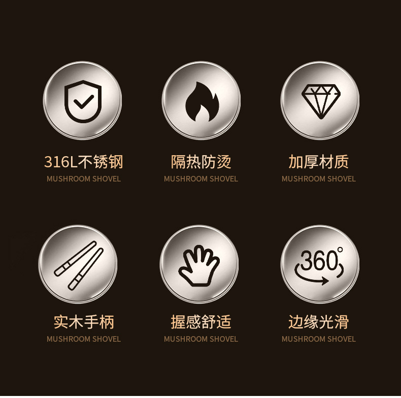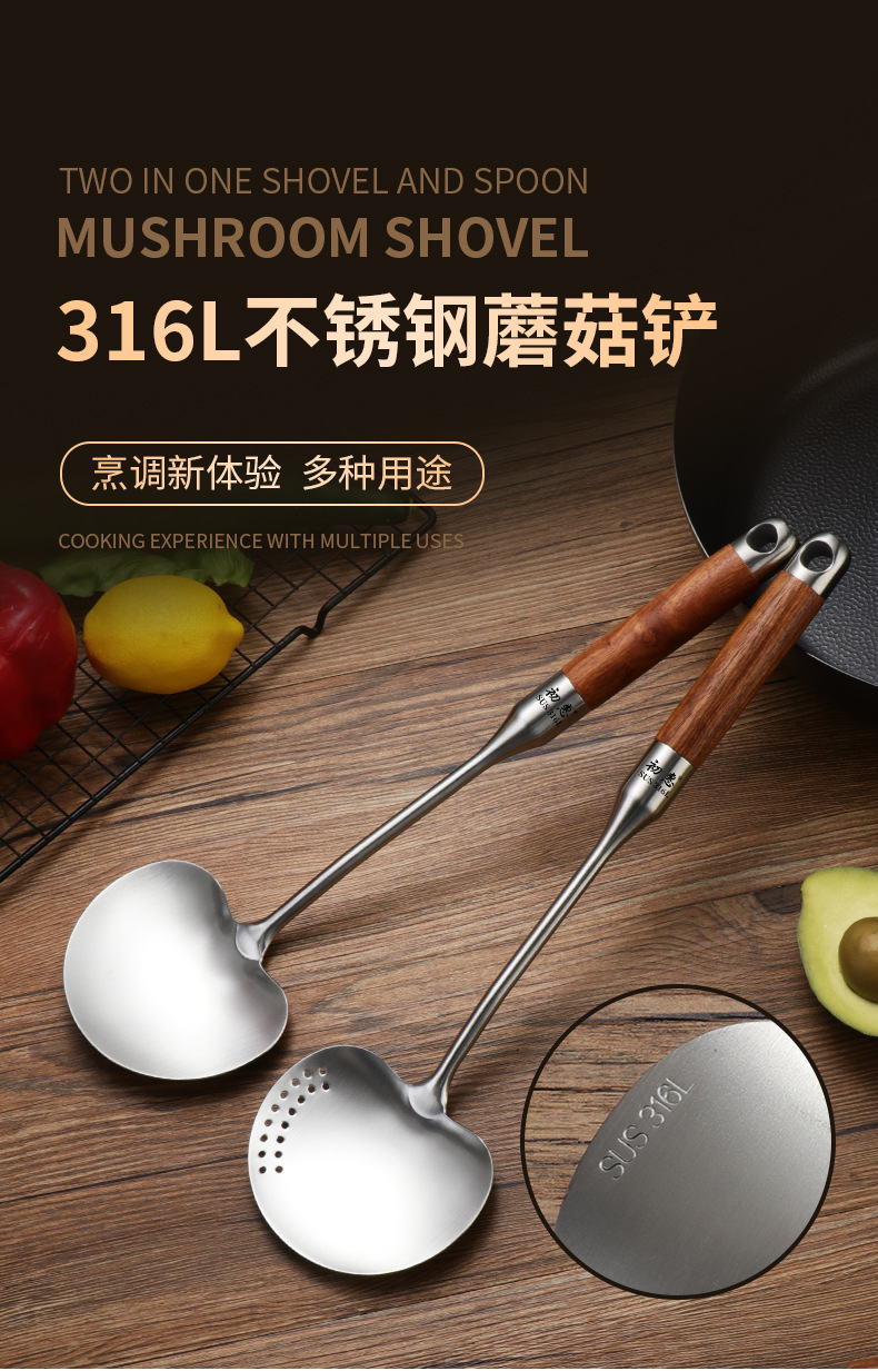 316 스테인리스 스틸 버섯 모양 주걱, 구멍이 있는 작은 냄비용 주걱, 316 가정용 기숙사용 요리용 숟가락