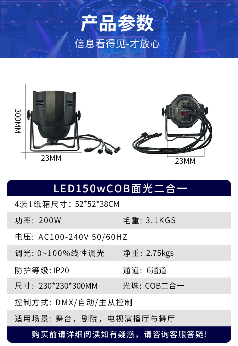 150wCOB 페이스 라이트 투인원 분위기 램프 디스코 KTV 풀 컬러 파 라이트 높은 보호 LED 페이스 라이트 램프 도매스토어 가기