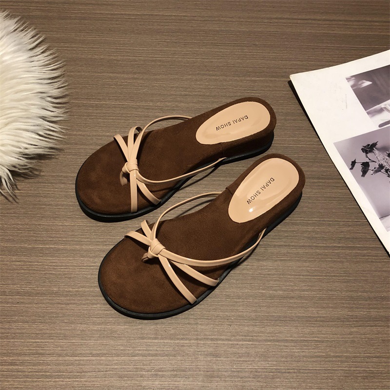 여성을위한 두꺼운 굽 누드 핑크 얇은 스트랩 프렌치 샌들 2025 여름 새 스타일 스커트 휴가 로마 샌들스토어 가기