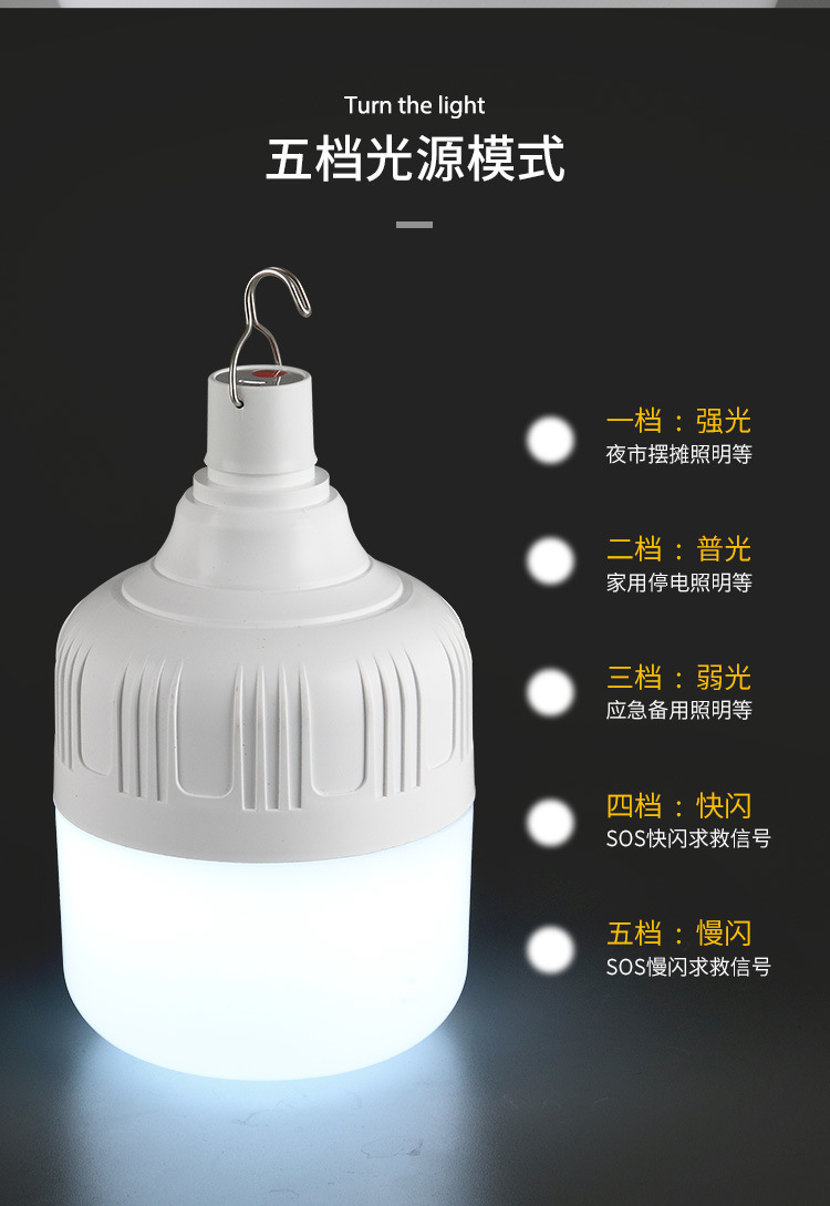 LED 충전식 전구 슈퍼 밝은 야시장 휴대용 노점 홈 USB 정전 비상 야외 조명 교수형 램프 브래킷