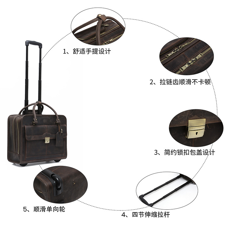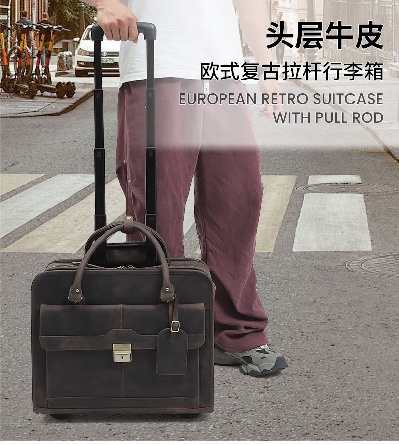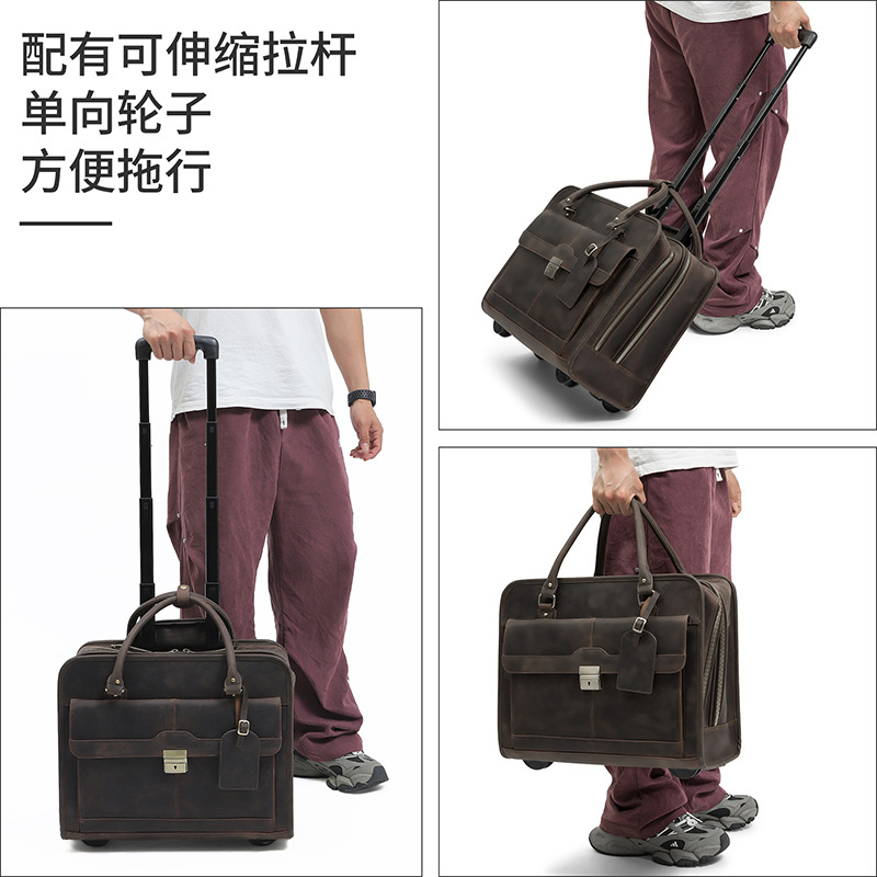 공장 맞춤형 정품 가죽 가방 트롤리 케이스 편리한 대용량 휴대용 가방 탑승 가방 가죽 가방스토어 가기