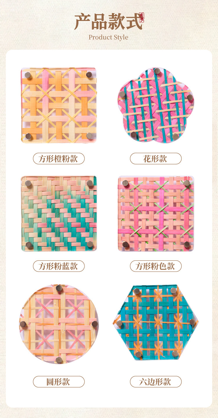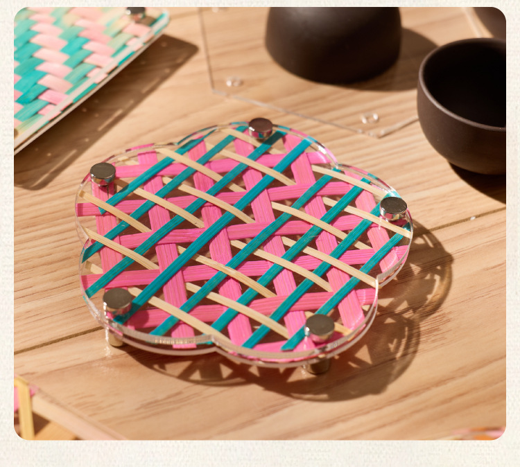 • 아크릴 대나무 코스터 - 스퀘어 핑크 스타일