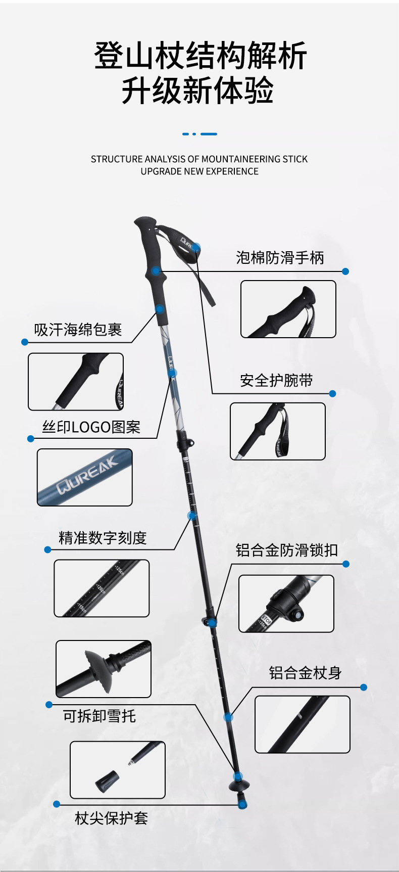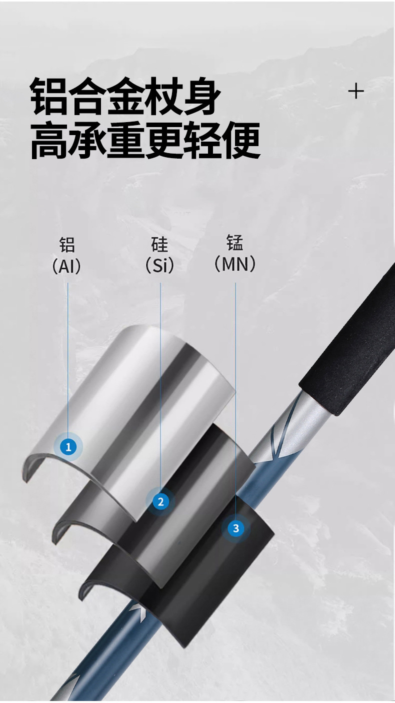 야외 트레킹 스틱 알루미늄 합금 EVA 핸들 트레킹 스틱 초경량 스트레이트 핸들 텔레스코픽 야외 트레킹 스틱스토어 가기